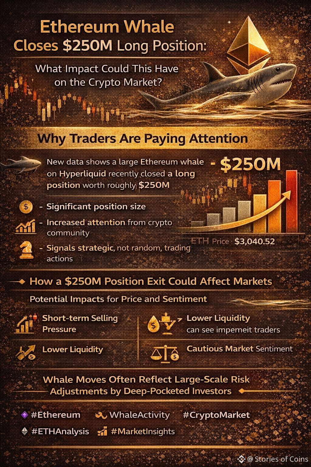🐋 Market Watch: A Large ETH Whale Closed a $250M Position — Why Traders Are Paying Attention