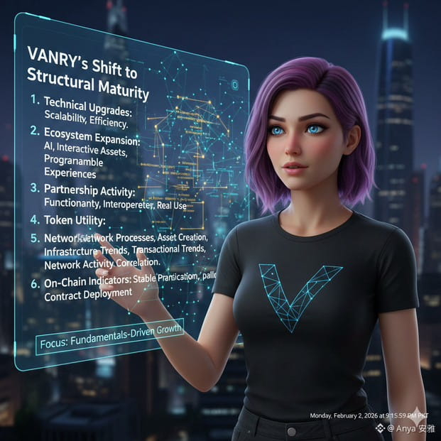 What happens when a project keeps shipping upgrades while the wider market watches only price charts? anya sees VANRY entering a phase where infrastructure growth, ecosystem depth, and on-chain consistency are shaping its narrative more than short-term volatility. Recent development work has focused on strengthening the base layer for AI-driven logic, interactive digital environments, and scalable virtual applications. This approach has kept VANRY aligned with long-term utility trends rather than speculative cycles, which is increasingly visible in how the market responds during periods of broader uncertainty.