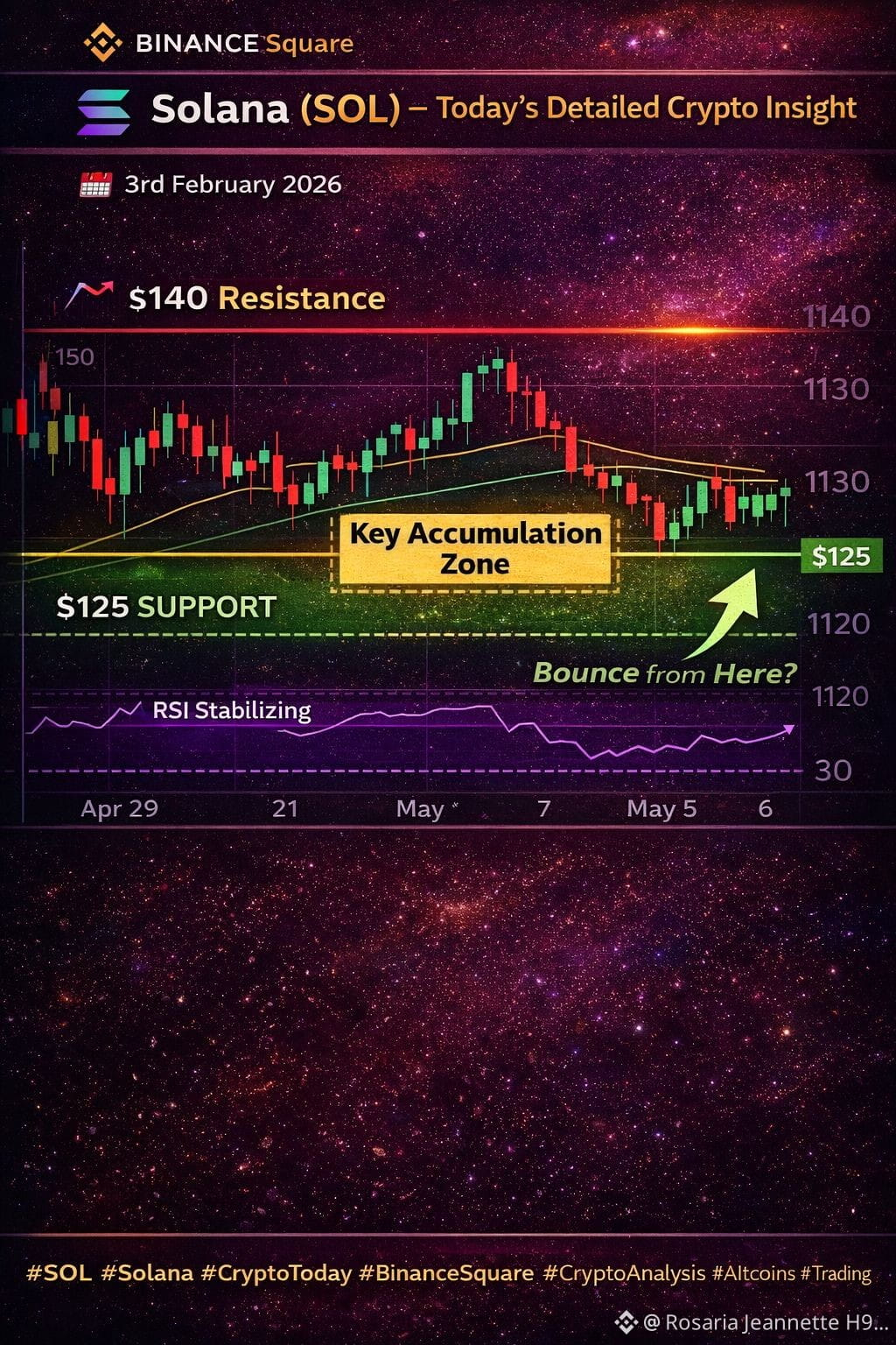 Solana (SOL) is currently in a patience-based accumulation phase, offering strategic opportunities for traders who are willing to monitor the market carefully. By observing support levels, RSI stabilization, and overall market structure, traders can make informed decisions. If SOL holds above $125, a gradual upward trend is likely to unfold in the coming days, presenting a potential opportunity for long-term goals...