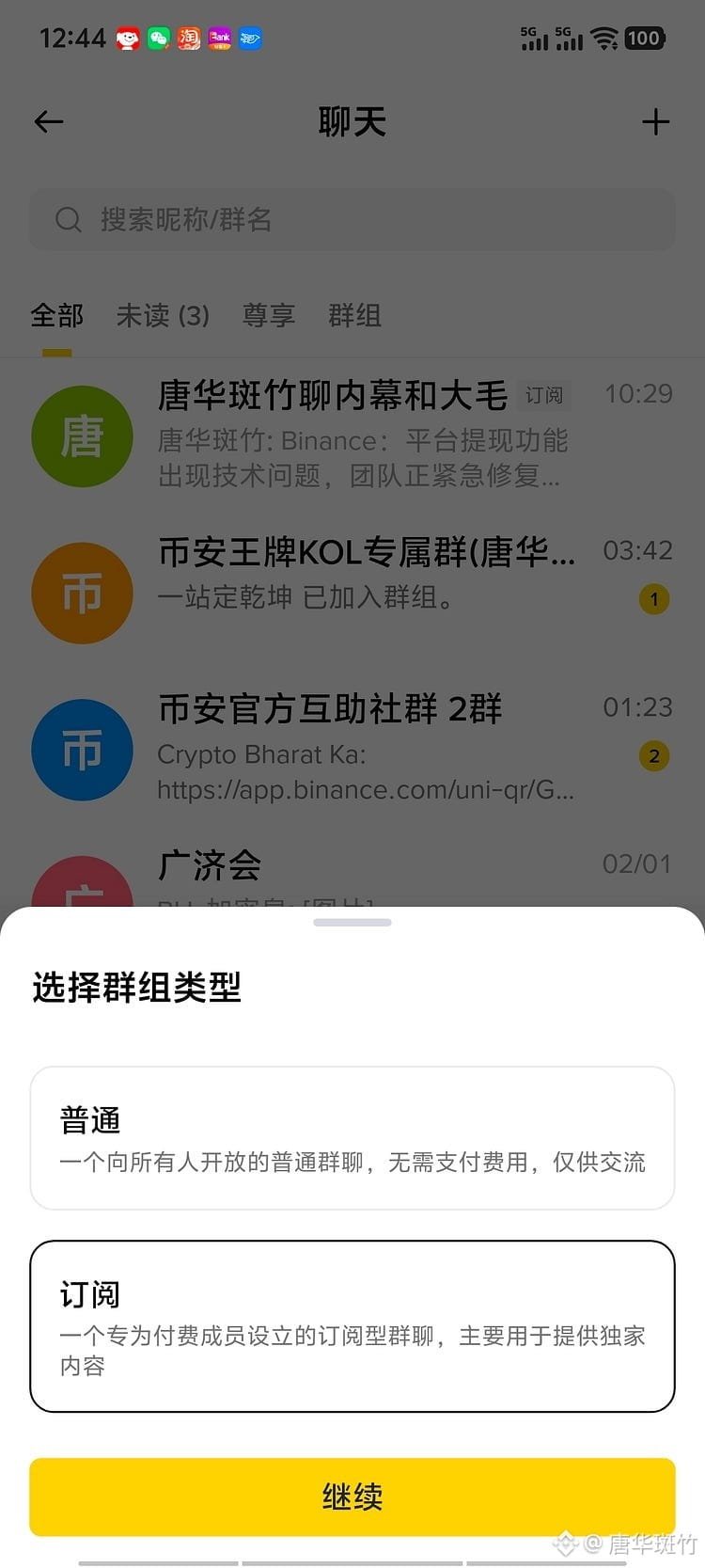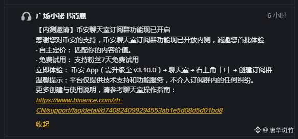 币安广场变现的途径越来越丰富了,今天收到内测邀请,抢鲜体验了币安聊天室订阅群功能!