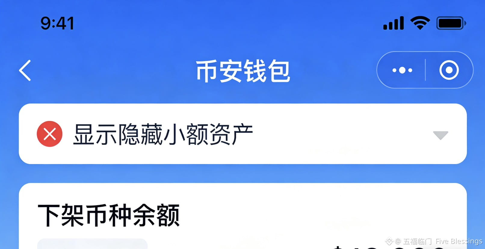 1. 钱包估值显示:现货停服后,你钱包里的这6个币不会再显示价格,想查余额的话,千万别勾钱包里的【隐藏小额资产】,勾了就看不到了
