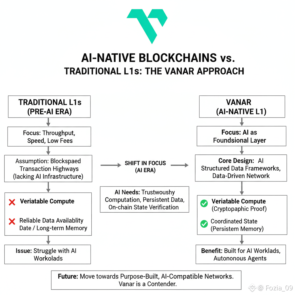 Zooming out,you can see that sheer performance hasn’t been enough to spark real AI adoption on chain.Plenty of high speed L1s exist,but most Web3 AI projects hit walls they lack solid data structures, trusted execution,proper incentives for compute providers,and clear economic models for AI generated value.Vanar’s approach is to embed AI coordination and verification into the core layer,not treat them as bolt on extras.That’s a real distinction from chains that simply brand themselves“AI friendly”but don’t actually change their design.