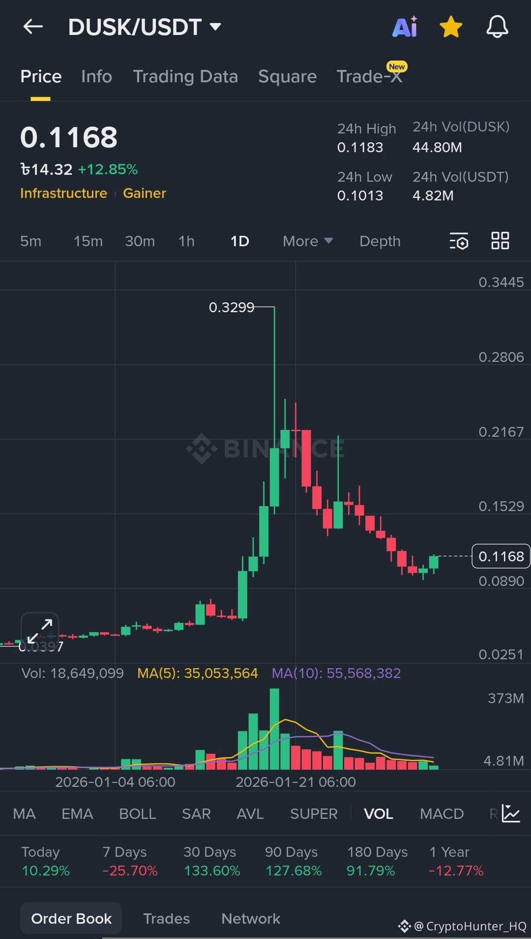 2. Long-term Growth: Despite the recent dip, DUSK is still up a massive +133.60% in the last 30 days. This proves the underlying trend is still very bullish.