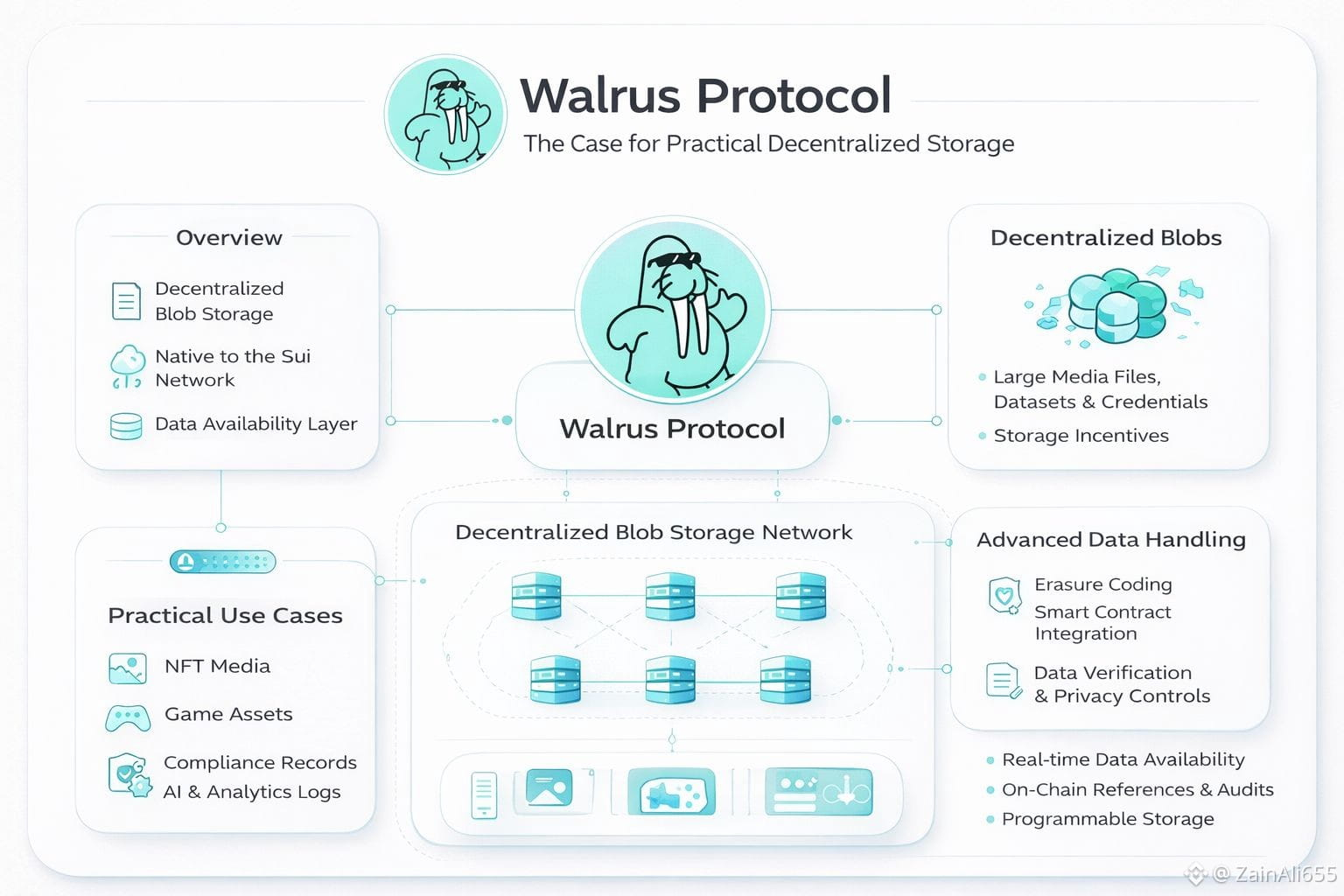 Another thing I appreciate is that Walrus doesn’t treat storage as an afterthought. Data availability isn’t just “off-chain somewhere.” Smart contracts can actually reference stored data, verify that it exists, and enforce rules around how it’s used. That opens up real, everyday use cases. NFT media that doesn’t vanish. Game assets that stay accessible. Compliance records that can be audited. Logs for AI or analytics that can’t be quietly altered. These aren’t edge cases. They’re things teams run into once users show up.