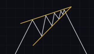 Fereastra ascendentă este un model de inversare bearish. Sugerează că, pe măsură ce prețul se strânge, tendința ascendentă devine din ce în ce mai slabă și ar putea în cele din urmă să rupă linia de tendință inferioară.