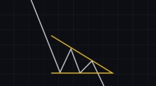 O fereastră este trasată prin linii de tendință convergente, indicând acțiunea de prețuri strânse. Liniile de tendință, în acest caz, arată că maximele și minimele cresc sau scad la o rată diferită.