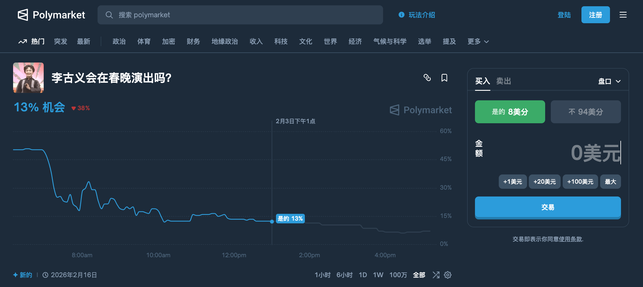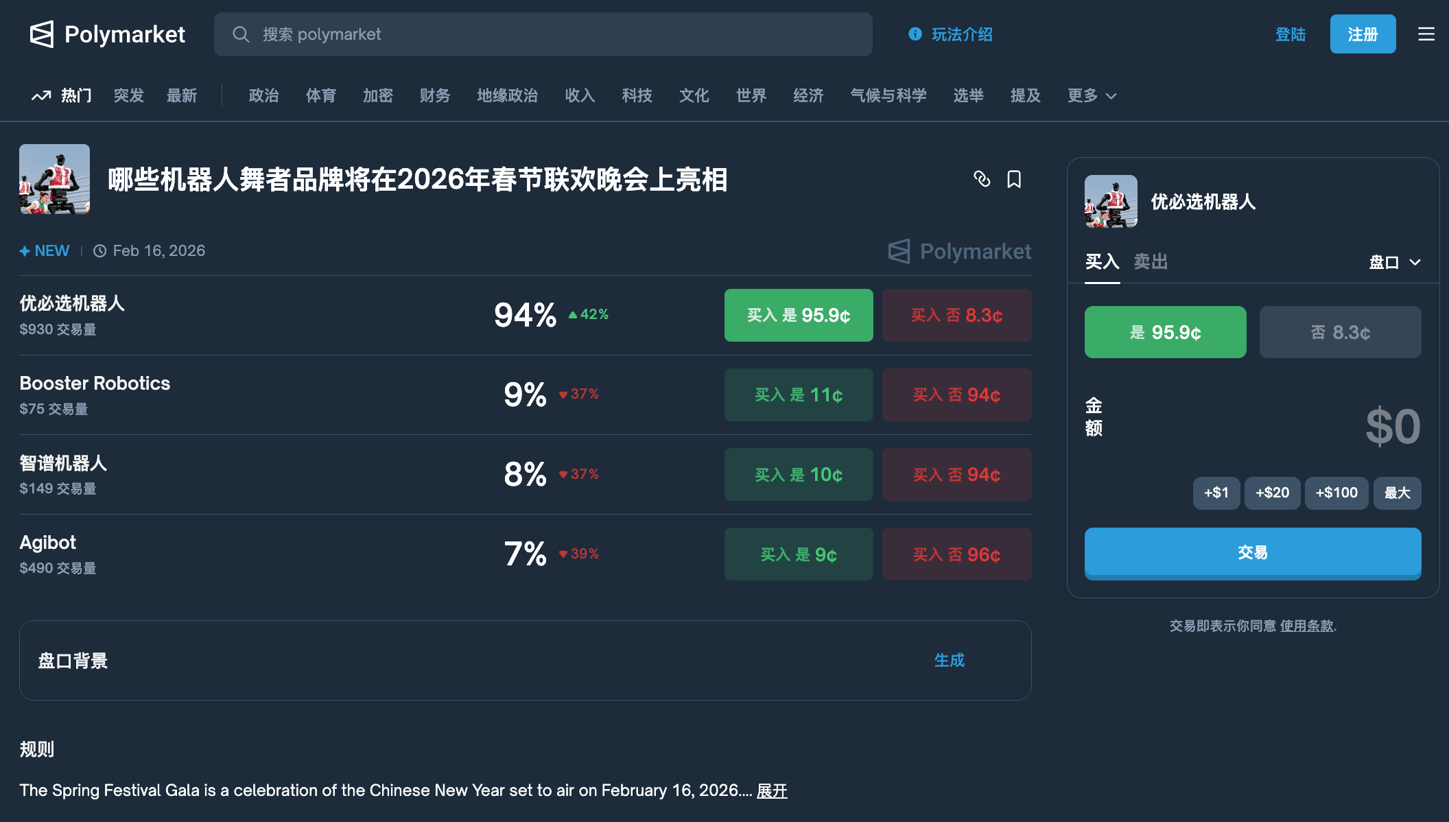 Polymarket 这波整活有点东西啊,直接上线了春晚的预测盘!