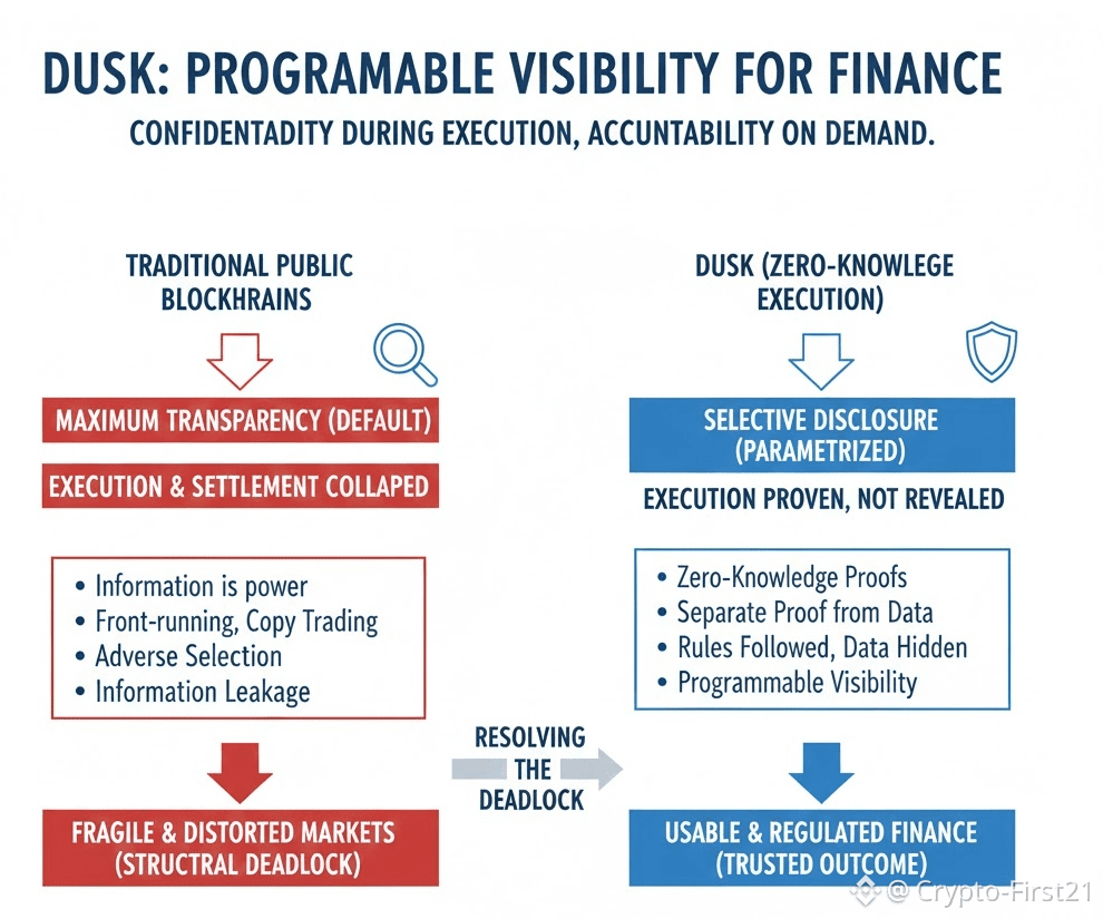 If crypto wants to host real finance, it must stop treating transparency as a default virtue and start treating it as a parameter. Markets do not need to see everything to trust the outcome. They need proof that the rules were followed.