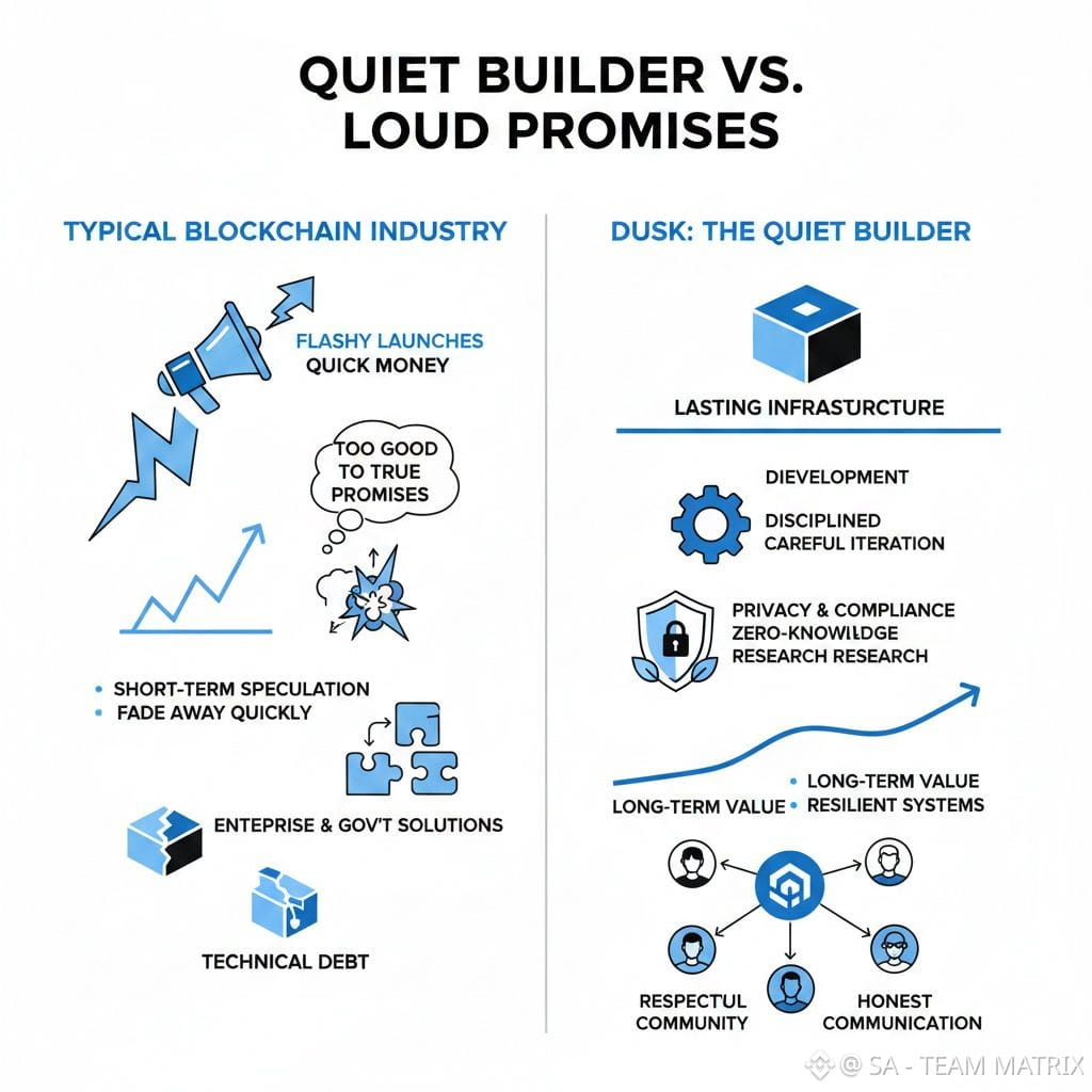 Dusk’s journey shows that silence is not stagnation. It is focus. In an industry addicted to speed the quiet builder mindset may be the most strategic advantage of all.