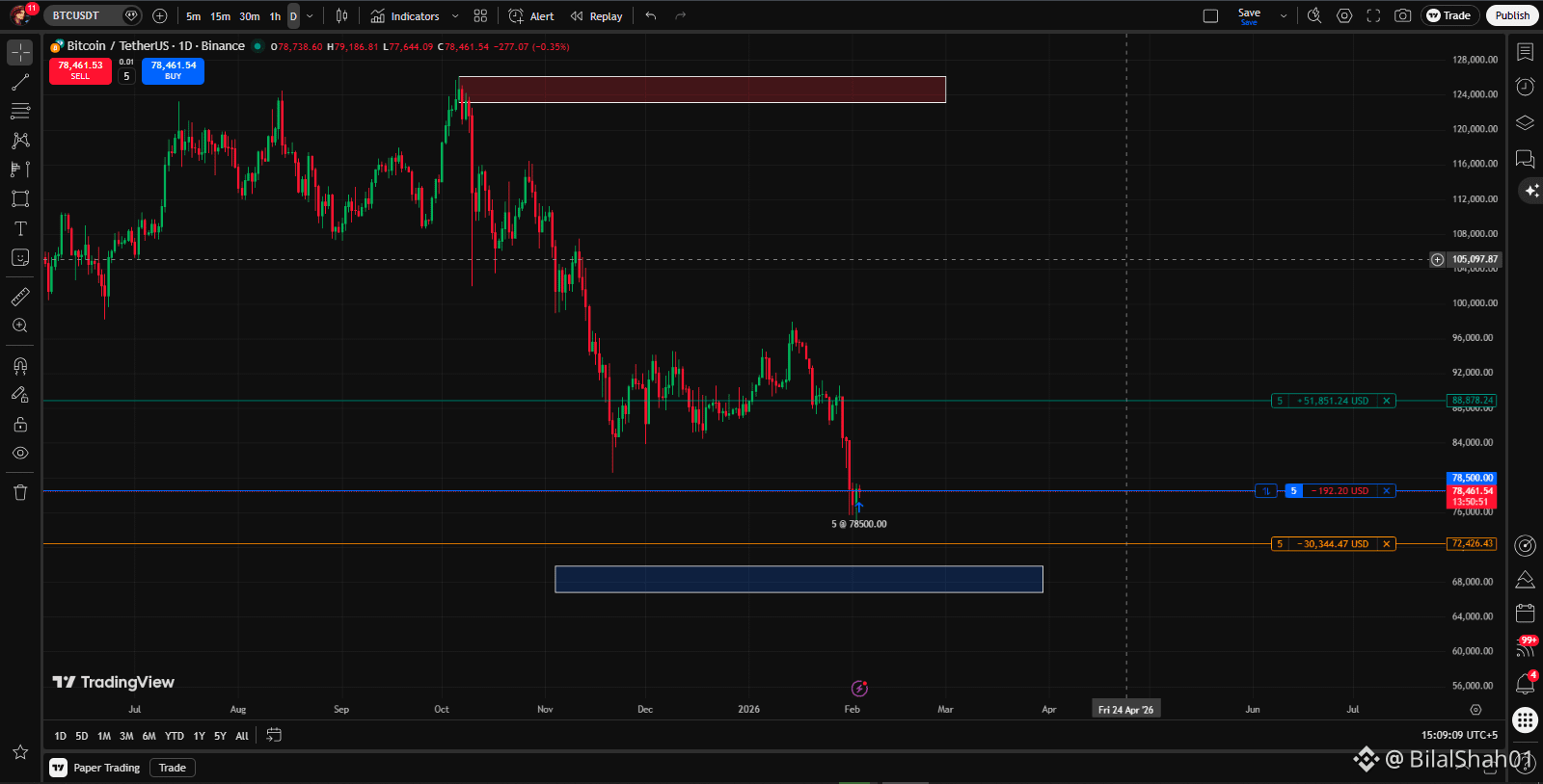 78,500 ke area par liquidity grab hua aur wahan se strong rejection mili — that was my short trigger.