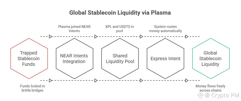 In early 2026 Plasma joined NEAR Intents. This move matters more than people realize. XPL and USDT0 became part of a shared liquidity pool across more than 25 chains and 125 assets. That means money does not get trapped.