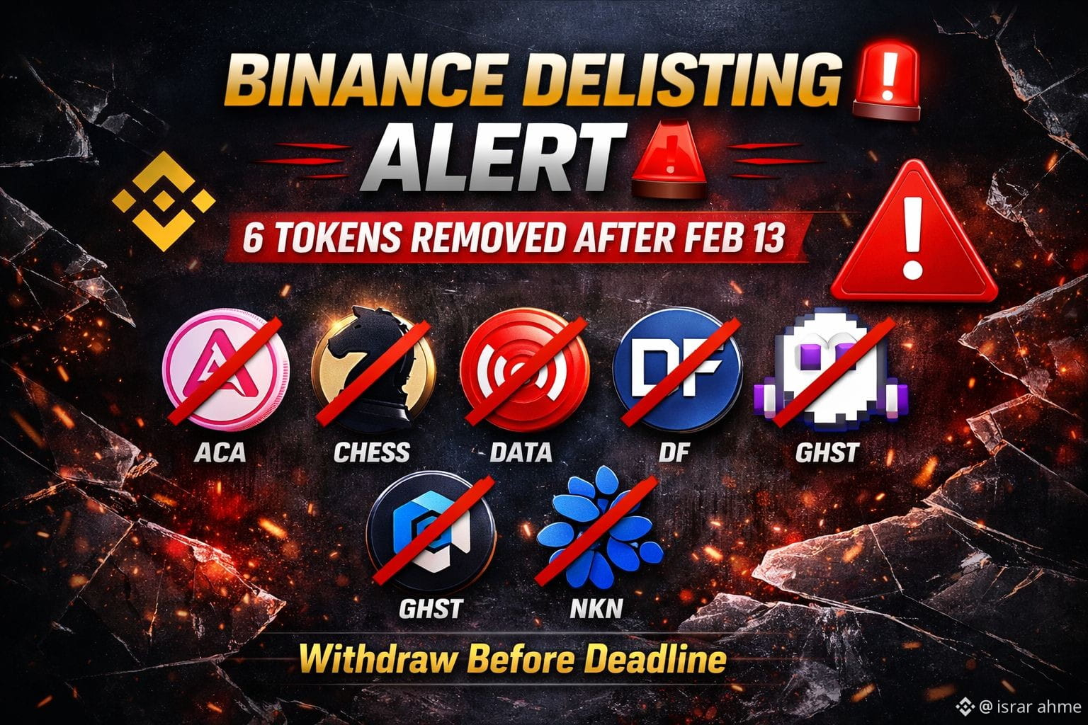 🚨 BINANCE ALERT: 6 CRYPTOS TO BE DELISTED AFTER FEB 13 🚨