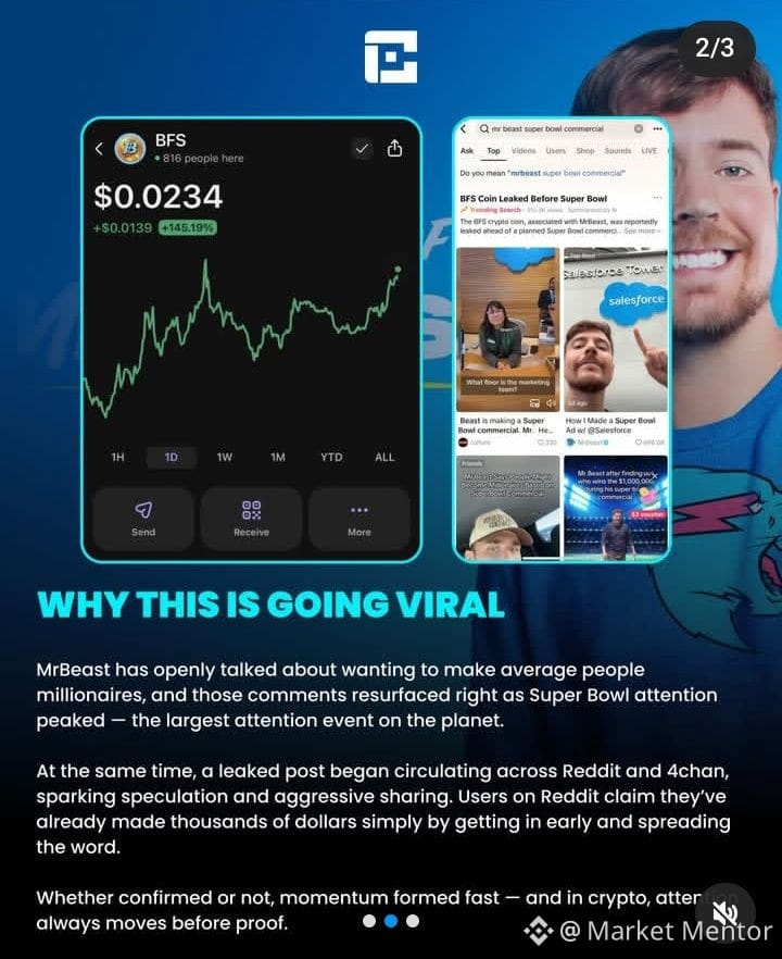 BFS is a newly launched Solana meme token that arrived on the market in January 2026 and immediately caught attention thanks to massive social media chatter tying it (sometimes inaccurately) to MrBeast. Traders saw rapid price spikes and heavy volume as BSF became one of the top trending tokens on tracking platforms within days of its debut. ļæ½