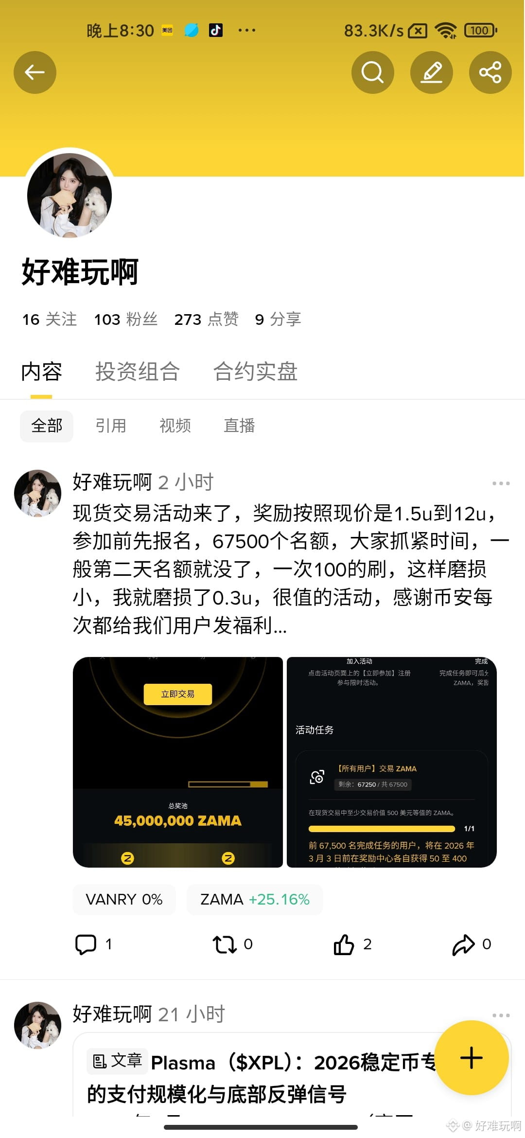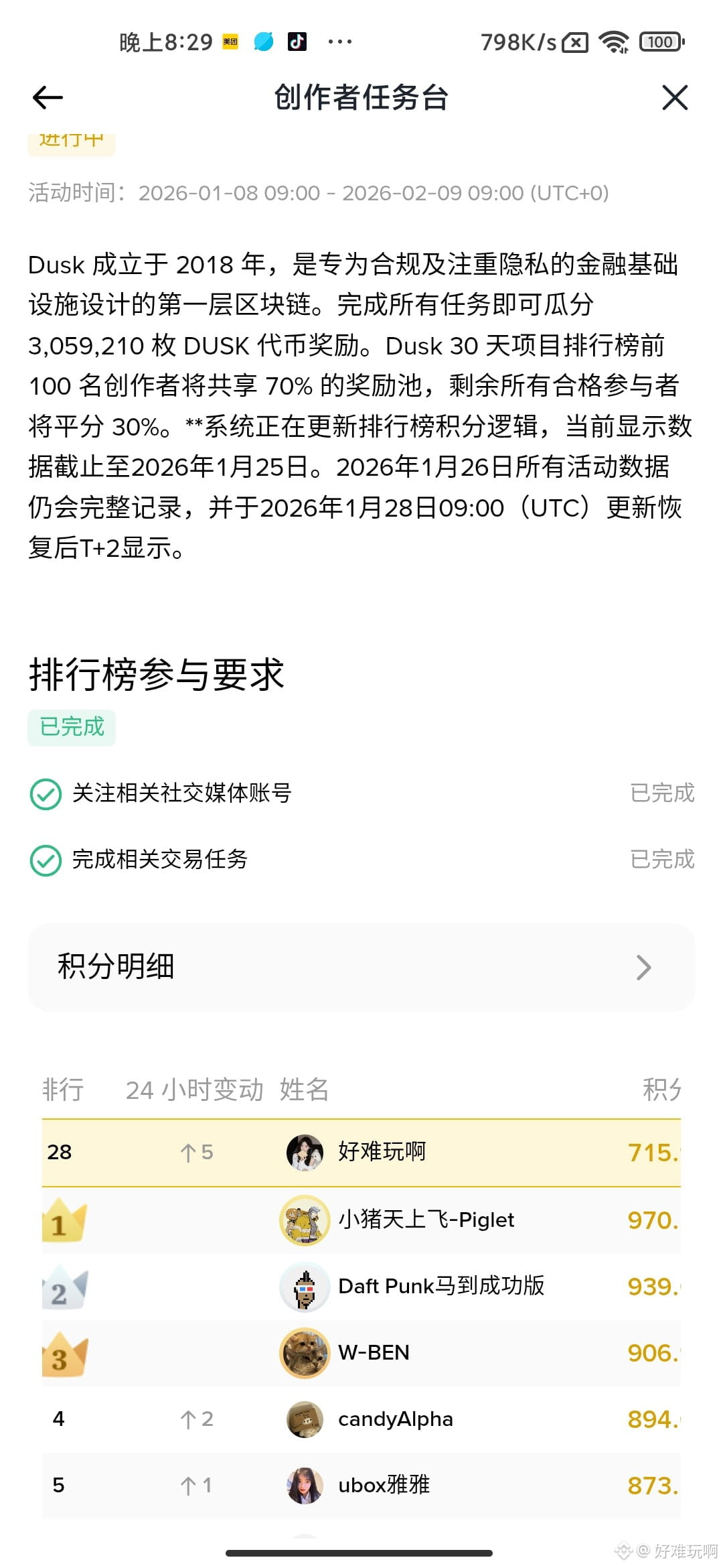 最后,再提醒一下,dusk的创作者活动还有6天就结束了,大家还没做过的赶紧做一下,有低保。价值20多u#Dusk $DUSK