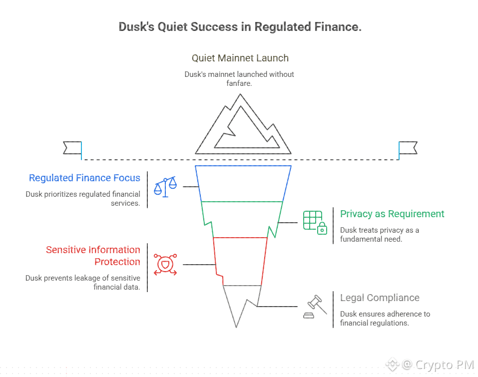 When Dusk mainnet went live in January 2026 it was not celebrated with fireworks. It quietly worked. That itself was a signal.