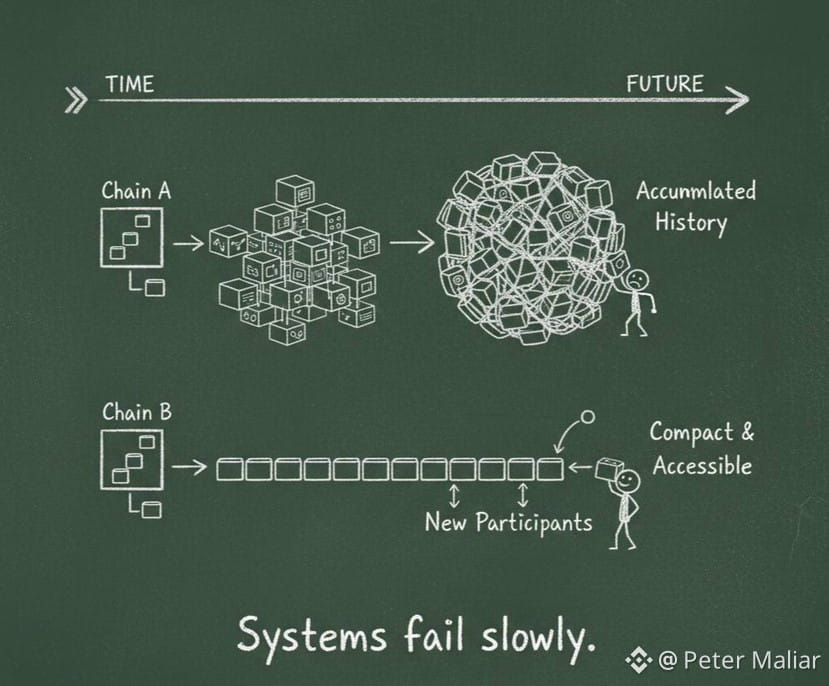 Another detail that matters more than most people admit is how the network handles growth over time. Blockchains don’t usually fail because of attacks; they fail because they become too expensive or too complex to participate in. State grows endlessly, syncing becomes painful, and decentralization quietly erodes.