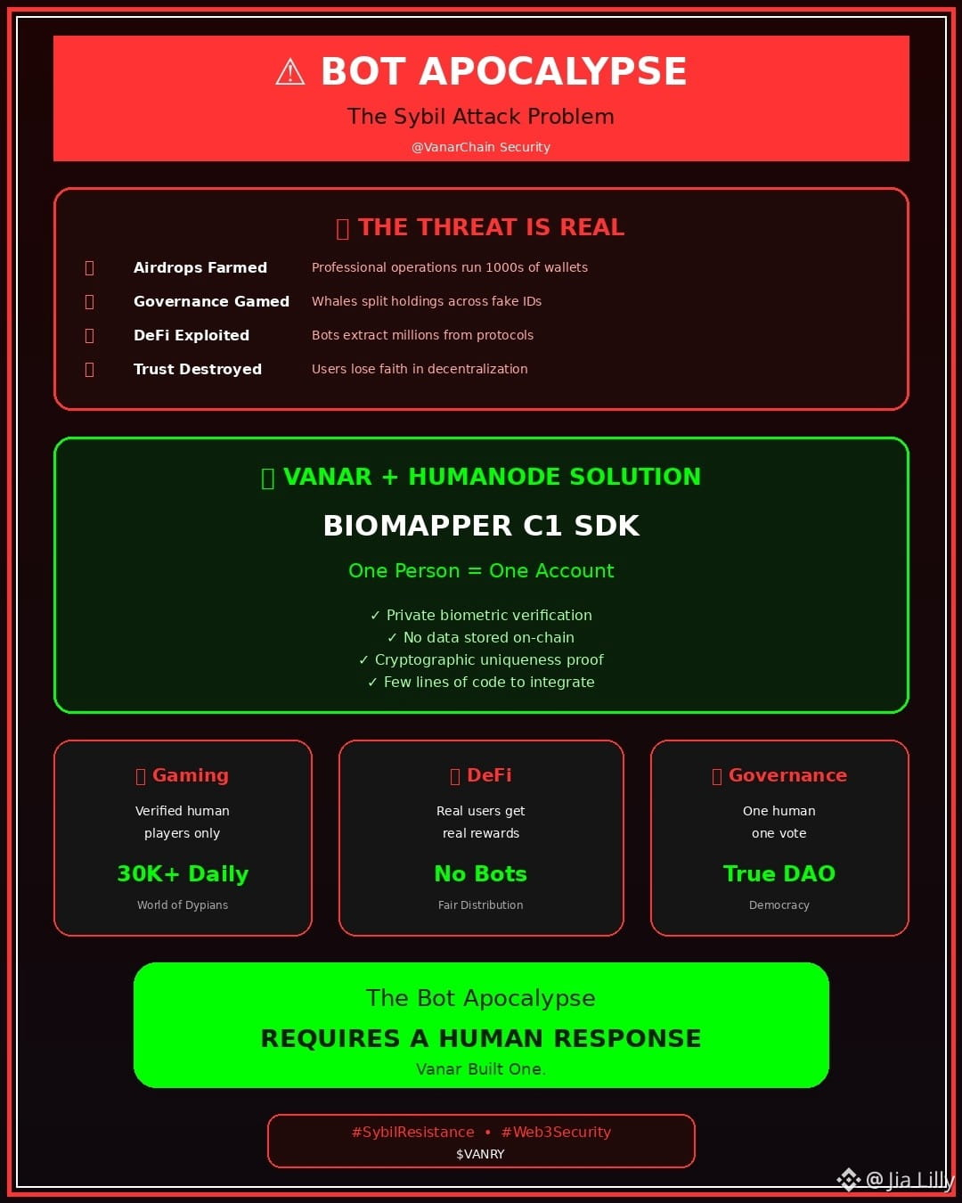 The bot apocalypse is a problem that needs a human response. Vanar made sure to include a response right from the start building it directly into the foundation layer of Vanar. This way Vanar is ready, for the bot apocalypse.