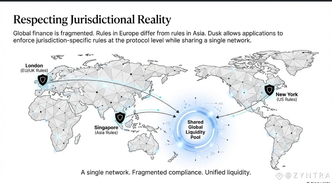 One of the most underappreciated aspects of Dusk is how it handles jurisdictional reality.