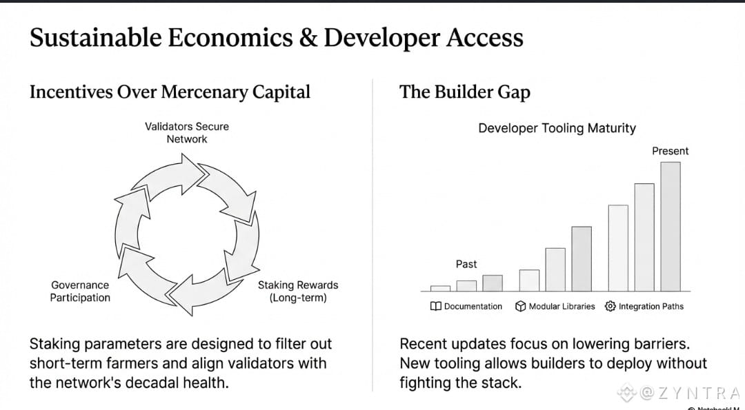 Recent adjustments to staking parameters and reward structures show a clear intent to encourage long term participation rather than short term farming. This is important because networks built on mercenary capital tend to collapse when incentives shift.