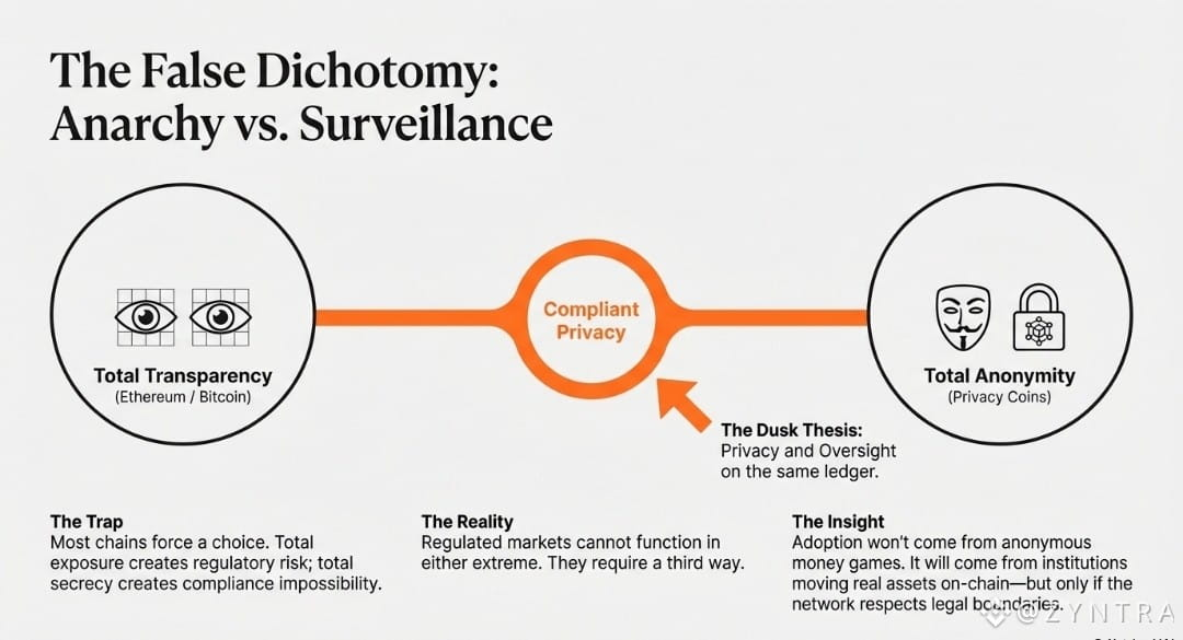 Most blockchains pick a side. Total transparency or total anonymity. Dusk refuses to choose.
