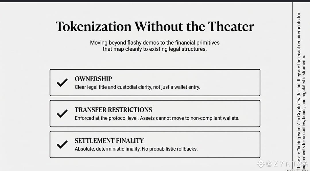 Dusk has taken a different approach. Instead of chasing flashy tokenization demos, it has focused on building primitives that map cleanly to existing financial structures.
