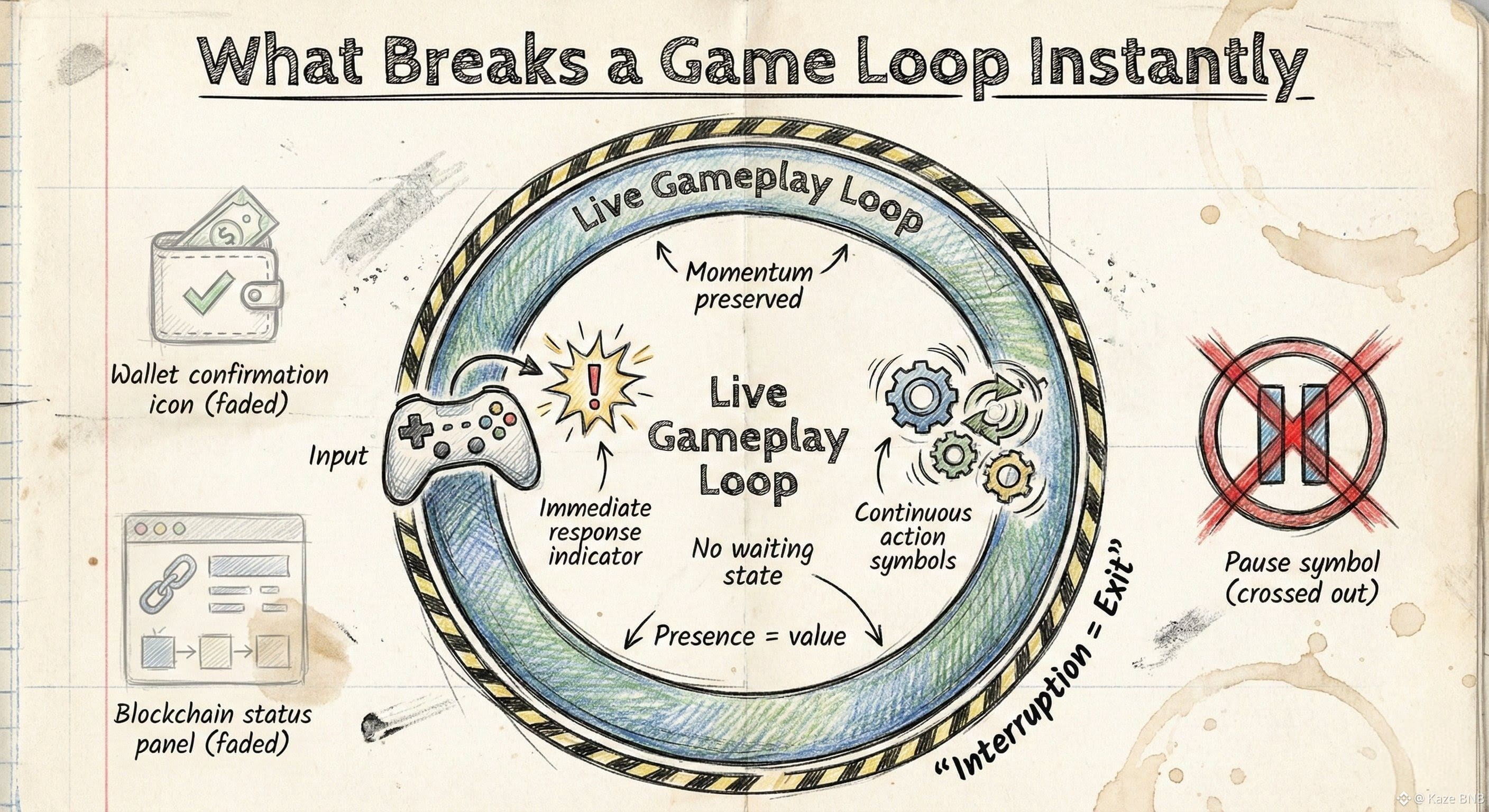 It usually does. A pause. A confirm. A reminder that there’s infrastructure underneath the experience. In most chains, that reminder is treated as normal. Inside a Vanar-powered game session, it would have been fatal. Games punish interruption quietly. They don’t argue. They just lose players.