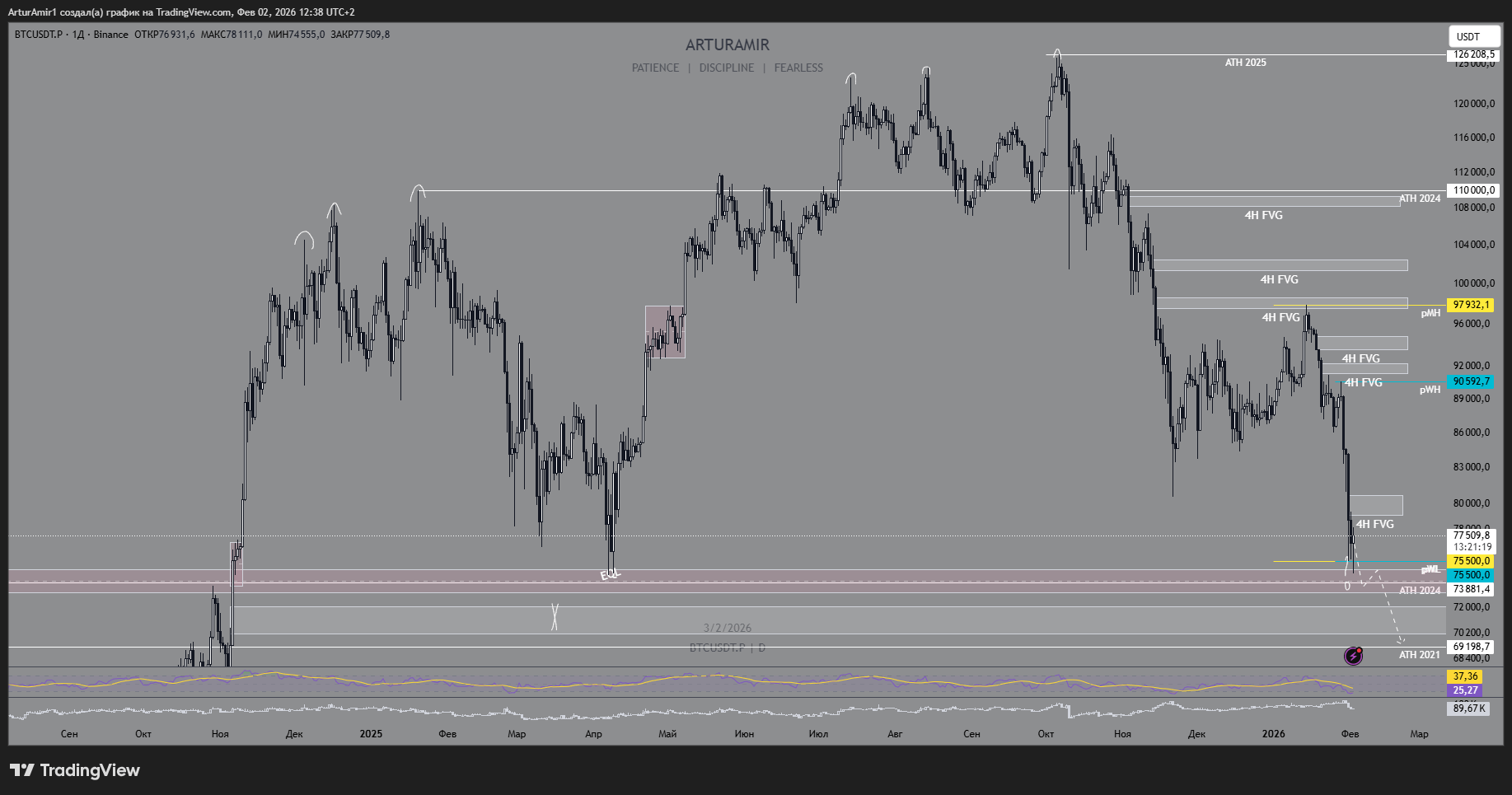 💡 Accentul săptămânii — pe recuperarea rapidă a rebound-urilor și „spike-urilor”. O cantitate mare de întrebări nerezolvate întărește narațiunea bearish. În general, așteptările pentru maximele din T1 2026 rămân valabile, dar local mă uit la un scenariu bearish.