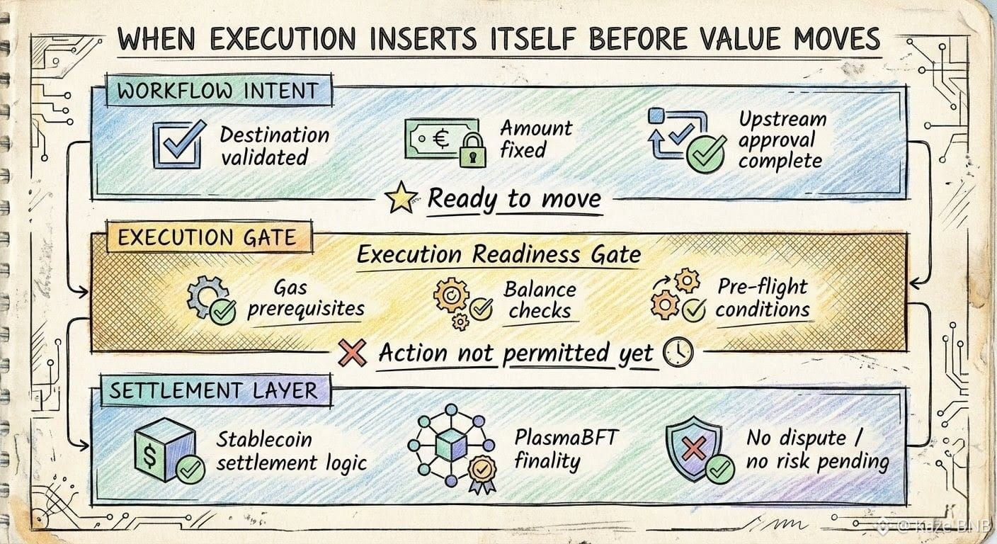 No answer is offered. No explanation surfaces. The system doesn’t justify the ordering or soften the pause. On Plasma, execution continues to ask for readiness before value moves, even when settlement would otherwise be acceptable.
