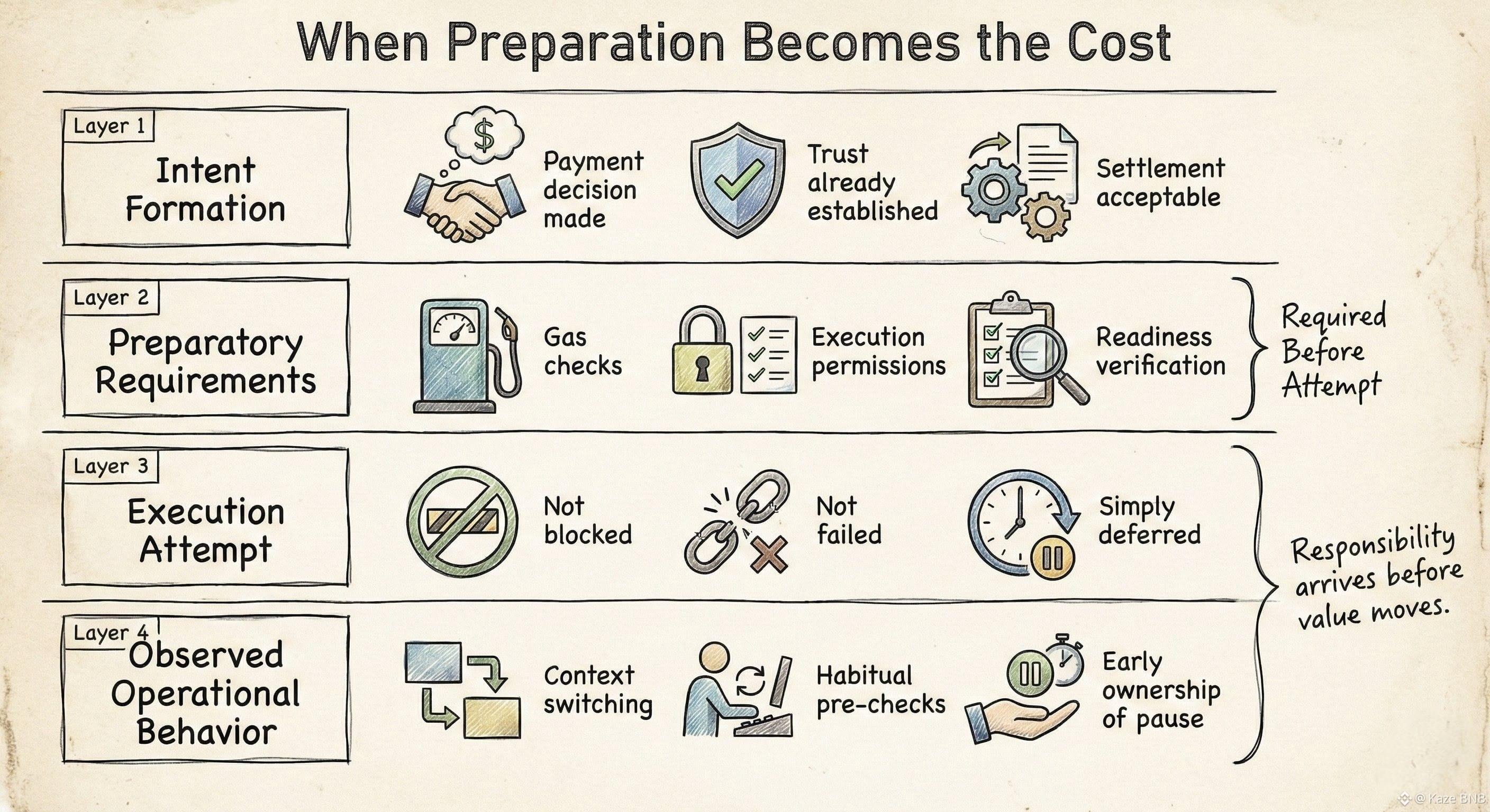 Nothing had gone wrong. The destination was already accepted. The value state was prepared. But execution didn’t begin. Preparation asserted itself first, inserting an extra step between readiness and motion, the way payment workflows on Plasma sometimes do when a stablecoin-centric gas model pulls prerequisite checks forward.