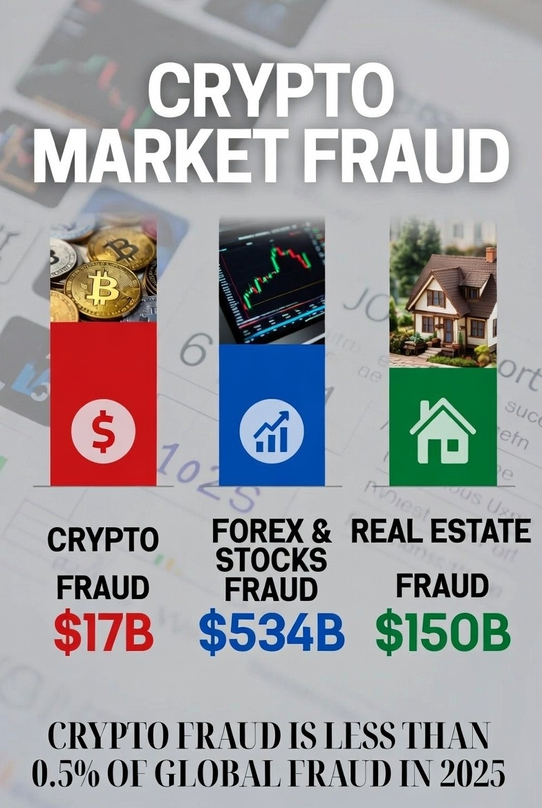✅ Piața criptomonedelor, care mulți cred că este cea mai frauduloasă, a înregistrat doar 17 miliarde de dolari în fraudă și furt în 2025