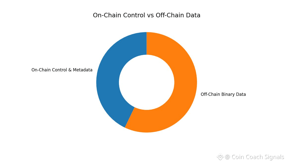 One of the more subtle design choices is how Walrus uses Sui as a control plane rather than reinventing everything from scratch. Metadata, availability proofs, and storage ownership live on Sui. The heavy data itself stays off-chain, but its lifecycle is governed on-chain.