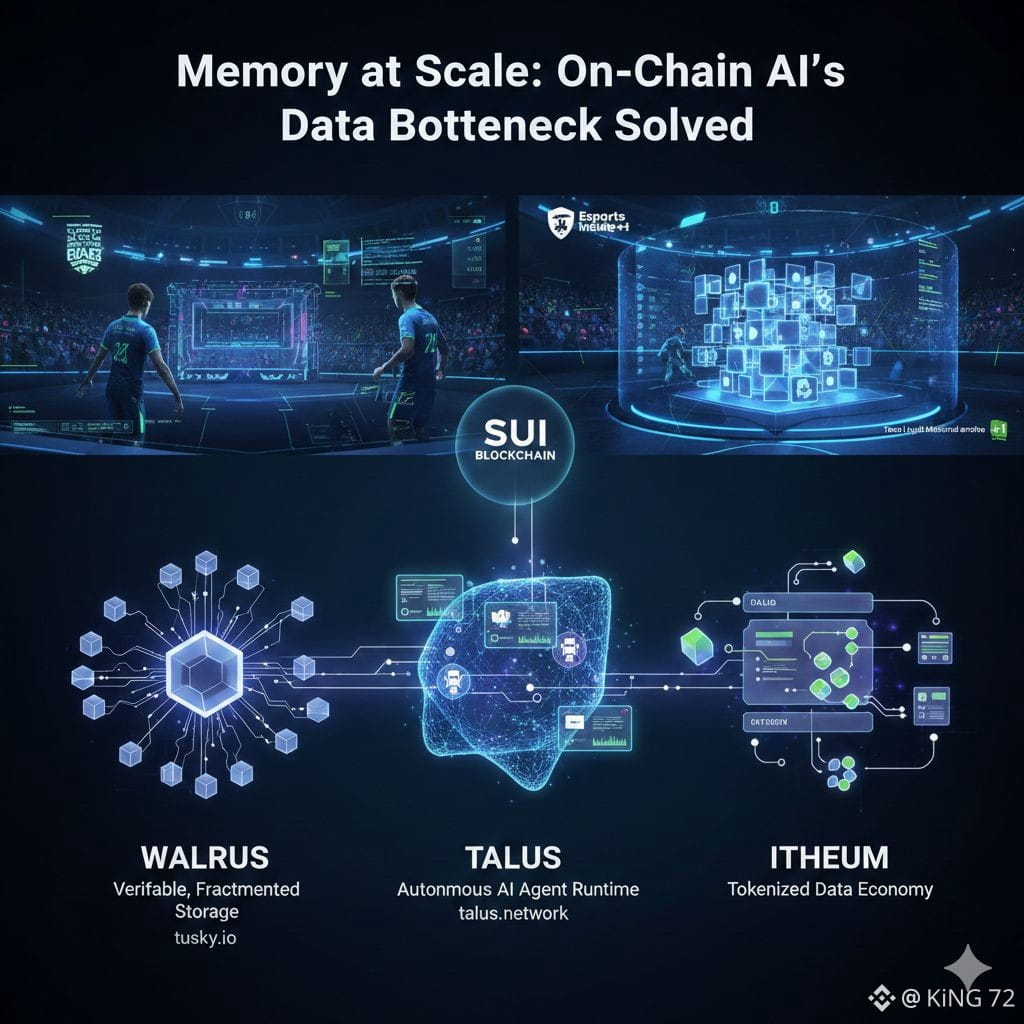 When I first wired an AI agent to stream and analyze live esports matches, the model was the easy part. The real pain arrived the moment the pipeline needed to keep reliable memory: terabytes of footage, streaming telemetry, player stats, and the messy swirl of social chatter. Models can reason; they can’t make up for brittle storage. For engineers, builders, and infrastructure decision-makers wrestling with on-chain AI, that mismatch is the single most important problem to solve. This article is for blockchain developers, AI engineers, and Web3 infrastructure leaders who need a practical mental model for what “data-native” blockchains look like — and why Walrus, Talus, and Itheum together represent a meaningful step toward agentic systems you can actually build on.