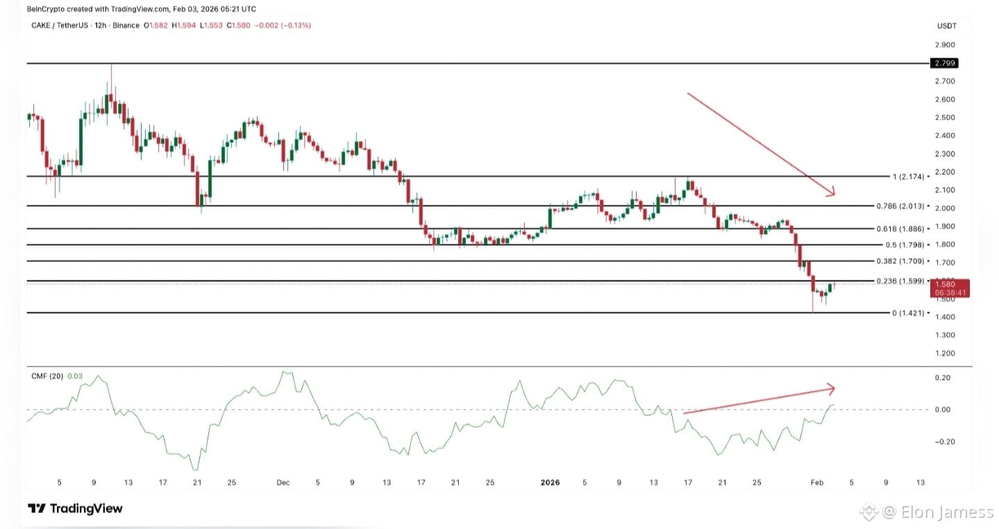 From a technical perspective $CAKE faces clear resistance near $1.59. A strong 12-hour close above this level could open a move toward $1.88 and then the psychological $2.00 zone. On the downside $1.42 remains critical support. A breakdown below this level would weaken the bullish structure.