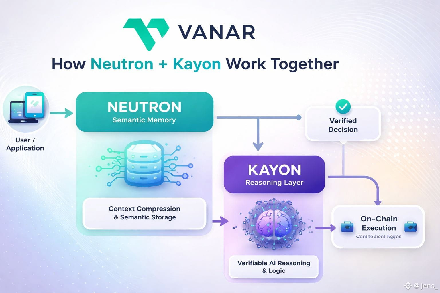 Kayon builds on top of that but in a way that is even more disruptive. Kayon is the reasoning layer and this is where Vanar breaks away from the rest of the market. Today AI reasoning happens on private servers. Nobody can verify how decisions are made. There is no proof no audit trail no transparency. Kayon changes that by giving AI models a verifiable reasoning environment on chain. When I first learned about this I had one reaction. This is exactly what the world needs before AI takes over financial systems governance systems and global infrastructure. We cannot rely on black box reasoning when billions of dollars and sensitive decisions are involved. Kayon gives developers provable reasoning which means an AI agent can justify its output and users can verify it.