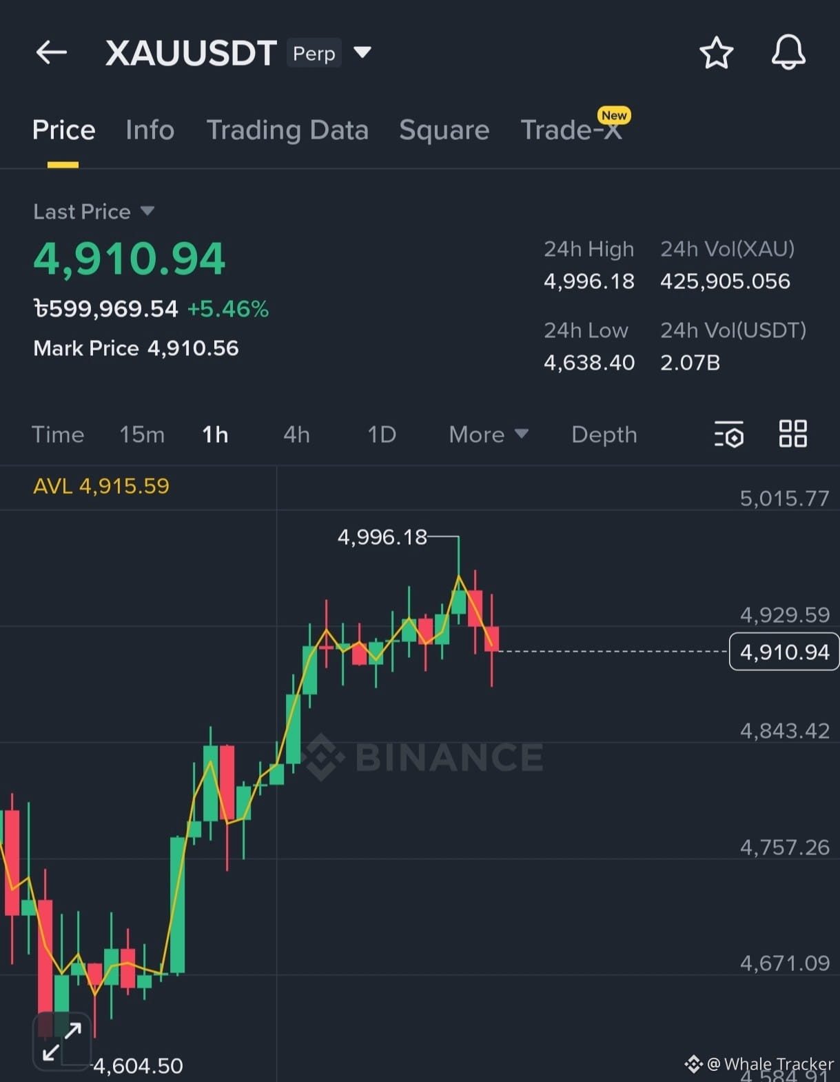 Now look at Gold. $4,910 and climbing.