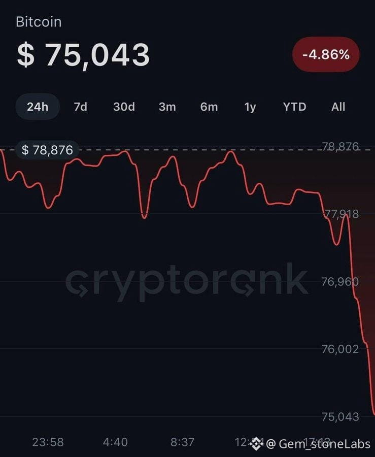 🚨Update: As Bitcoin turns red again, down 5% in 24H and trading around $75K, Strategy has an unrealized PnL of about -$800M.