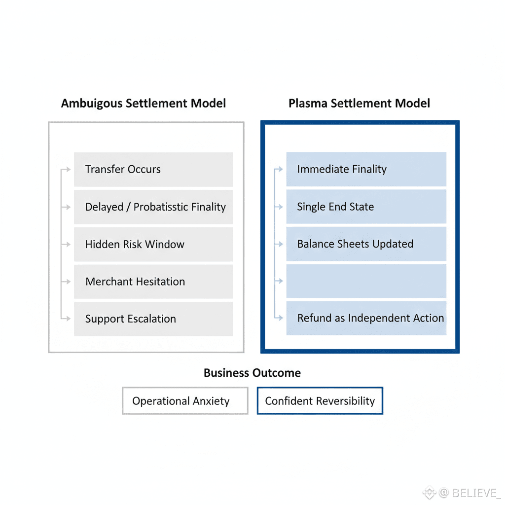 This is where Plasma’s emphasis on predictable settlement shows its second-order value. It’s not just about speed or cost. It’s about making the lifecycle of a transaction legible from start to finish — including the part where things change.