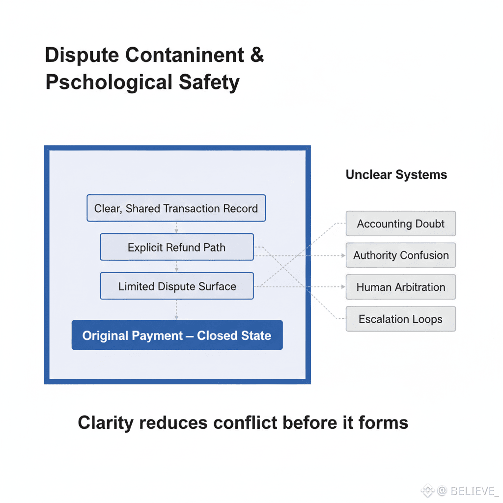 Another aspect worth noting is how this affects dispute handling. In many systems, disputes escalate because no one is certain what the system will do next. Was the payment final? Can it be contested? Who has authority? The lack of clarity pushes humans into the loop, where emotion and delay take over.