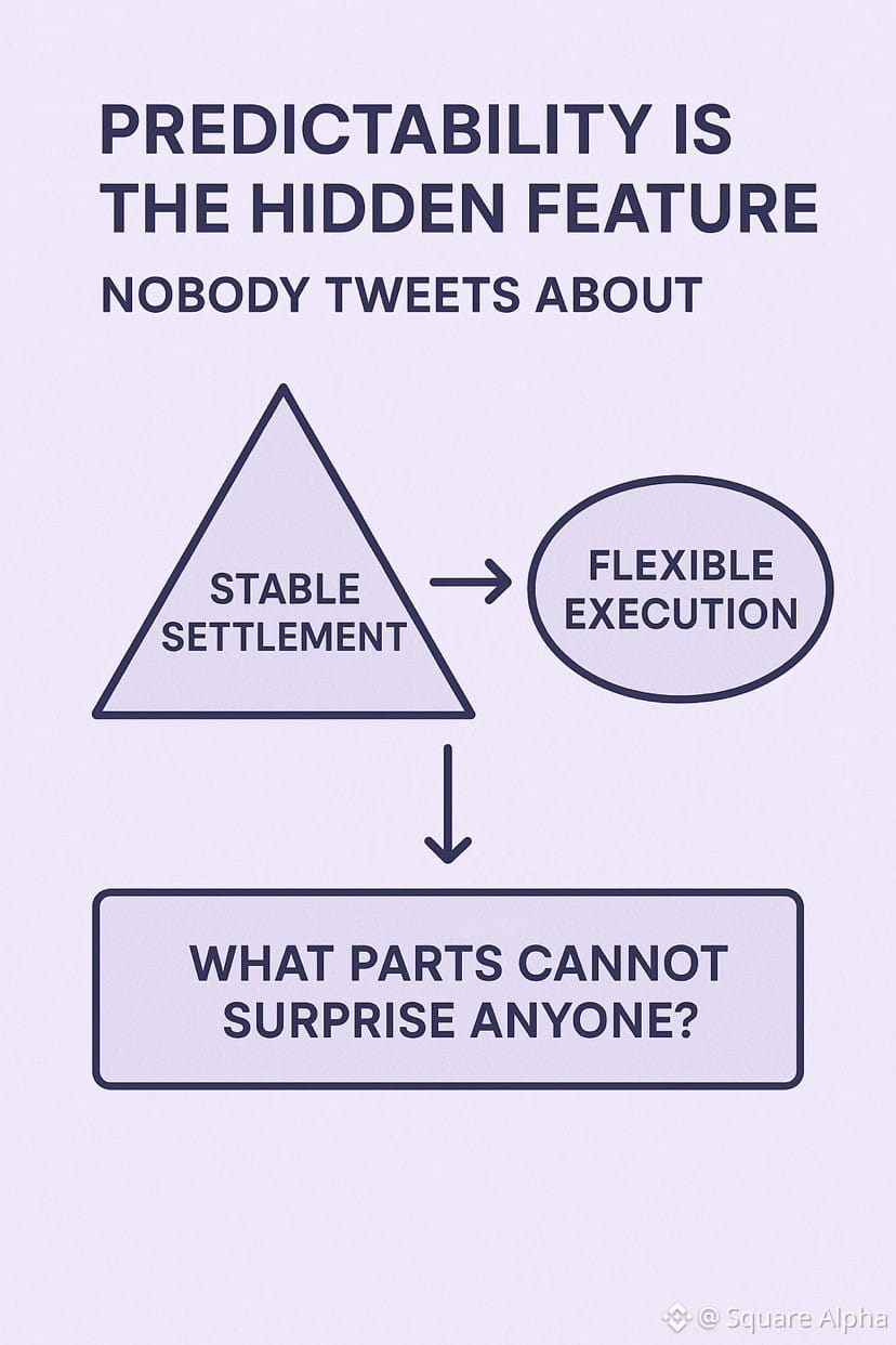 Dusk’s structure — stable settlement, flexible execution — reads like someone asked: what parts of this system absolutely cannot surprise anyone?