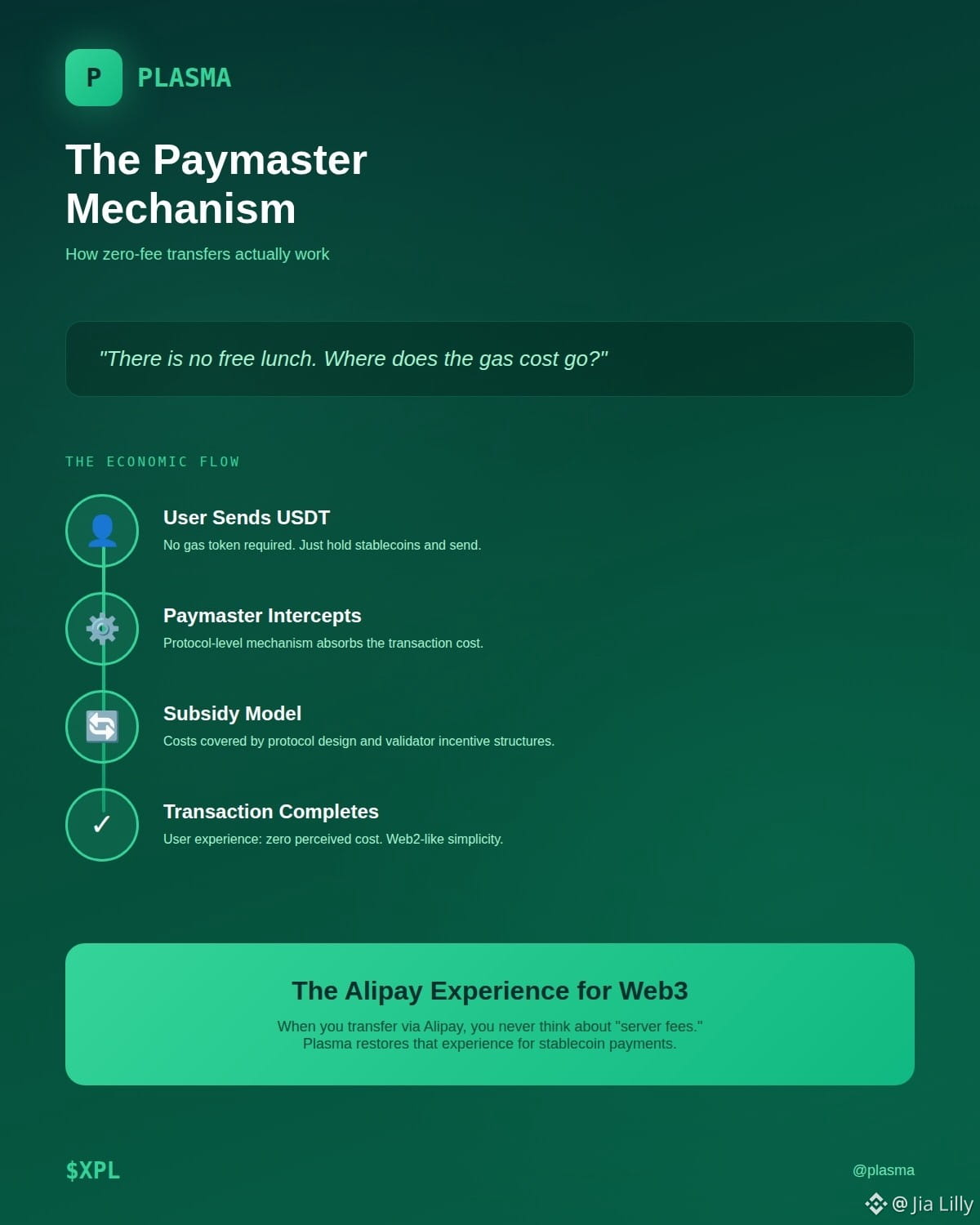 Plasma has a system where you do not have to pay any fees. This is not about saving money. It is about how people should feel when they make payments. The Paymaster mechanism makes things really easy for you. You have stablecoins. You can send them to others. The rest is taken care of by the system. Plasmas system is like that because that is what the people who made it think payments should be, like. You just hold onto your stablecoins. Send them when you need to. The infrastructure does all the work.