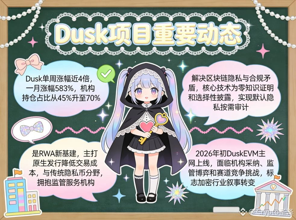 家人们,今天要聊的这个项目Dusk,最近真是杀疯了!单周涨幅接近4倍,一个月能涨583%,周成交额冲到14亿美元。但这都不是最关键的!