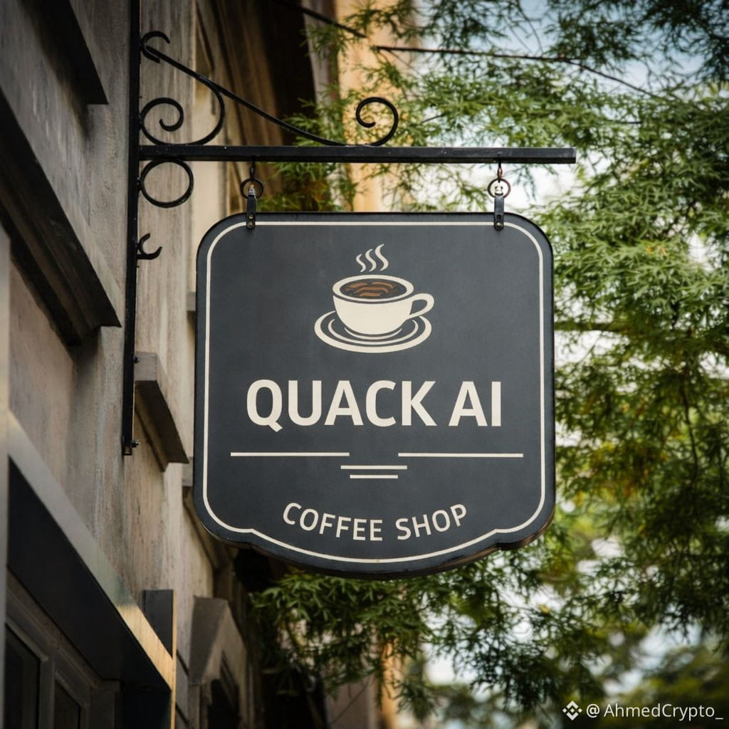 Imagine a place where the warm aroma of fresh coffee blends seamlessly with the power of artificial intelligence. This image captures a classic hanging coffee shop sign, elegant and timeless, featuring a steaming cup of coffee as its centerpiece. But this isn’t just another café — the bold QUACK AI name stands proudly at the center, transforming it into a symbol of innovation, technology, and modern community culture.