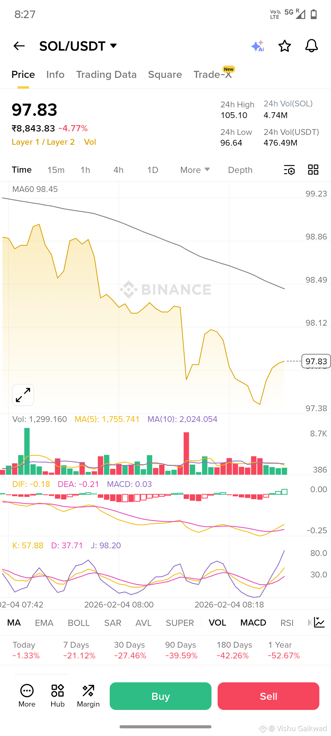 SOL has respected its higher-low formation on the 4H timeframe, signaling healthy accumulation. Volume is gradually increasing, which often precedes a sharp impulsive move. If price sustains above the psychological 100 USDT level, we could see an accelerated push toward higher resistance zones. ⚡