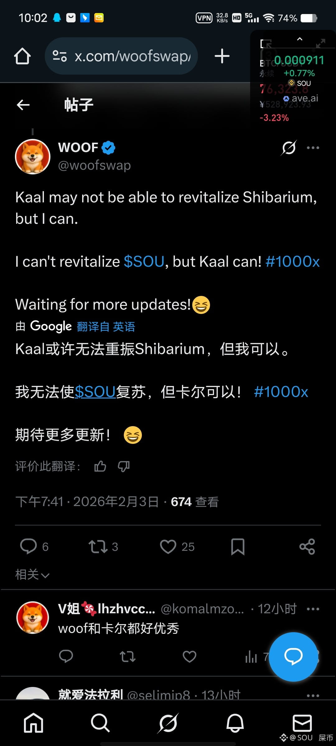 由shib官方首席开发者卡尔推出的sou筑底已经完成,就等卡尔官宣起飞