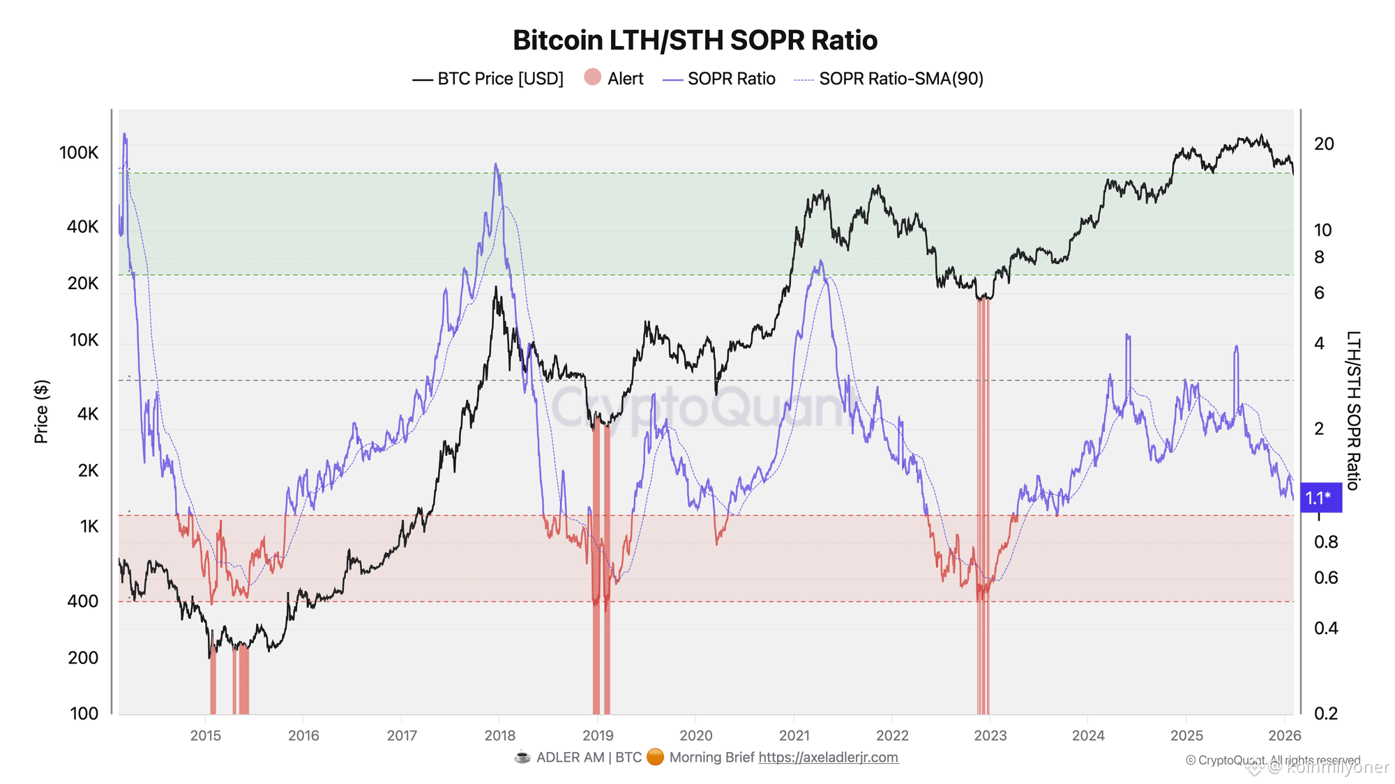 Adler also highlights the LTH/STH SOPR Ratio, which compares profitability between long-term holders (LTH) and short-term holders (STH).