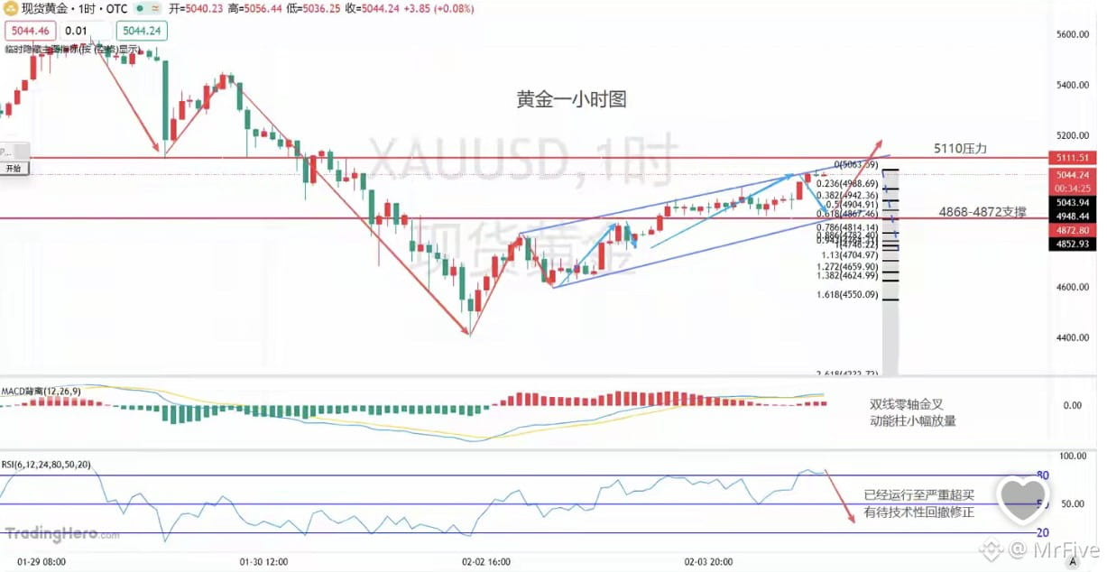 支撑区域:关注4868-4872美元区间(前高支撑+通道下沿+斐波那契0.618位)。
