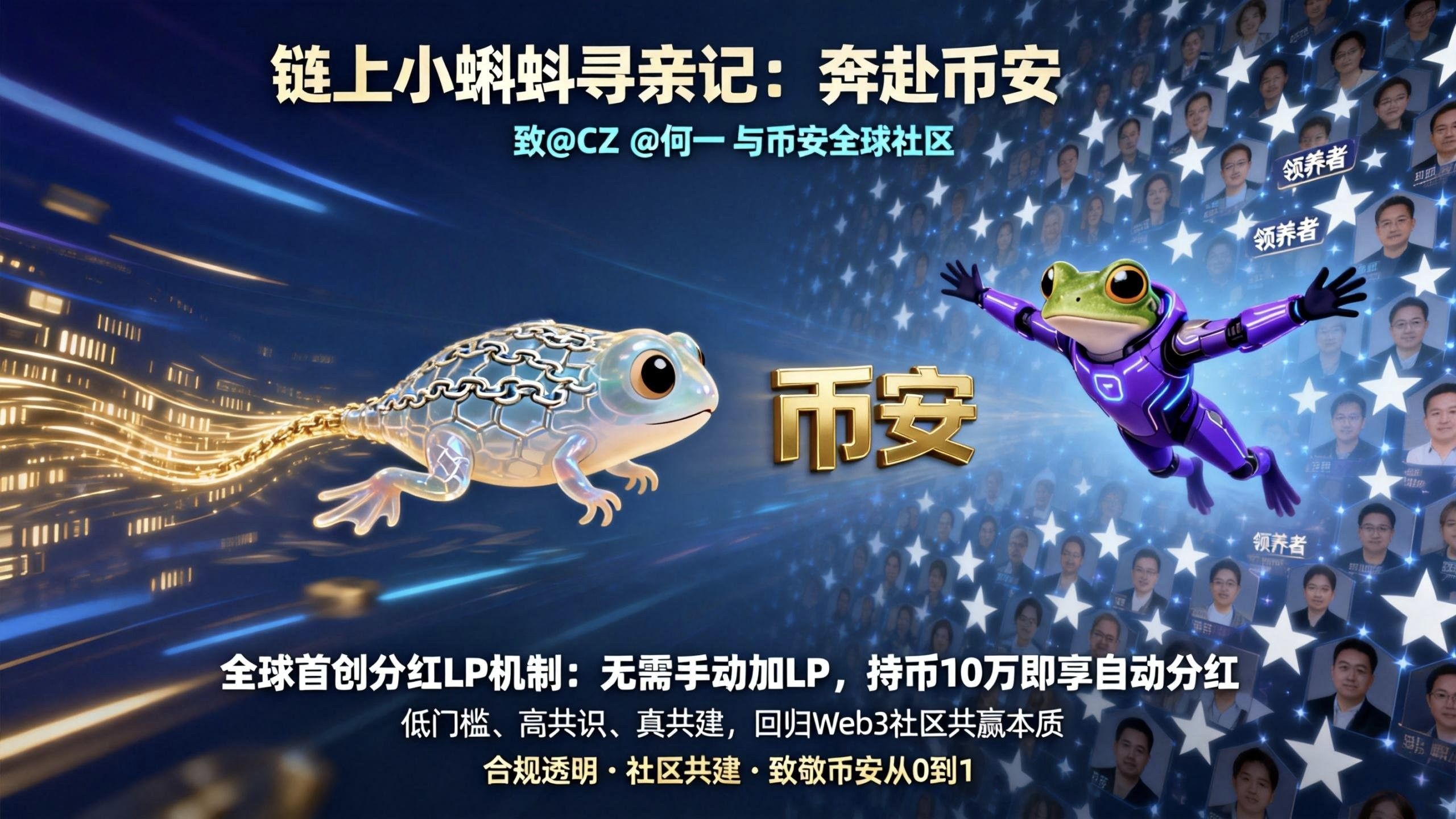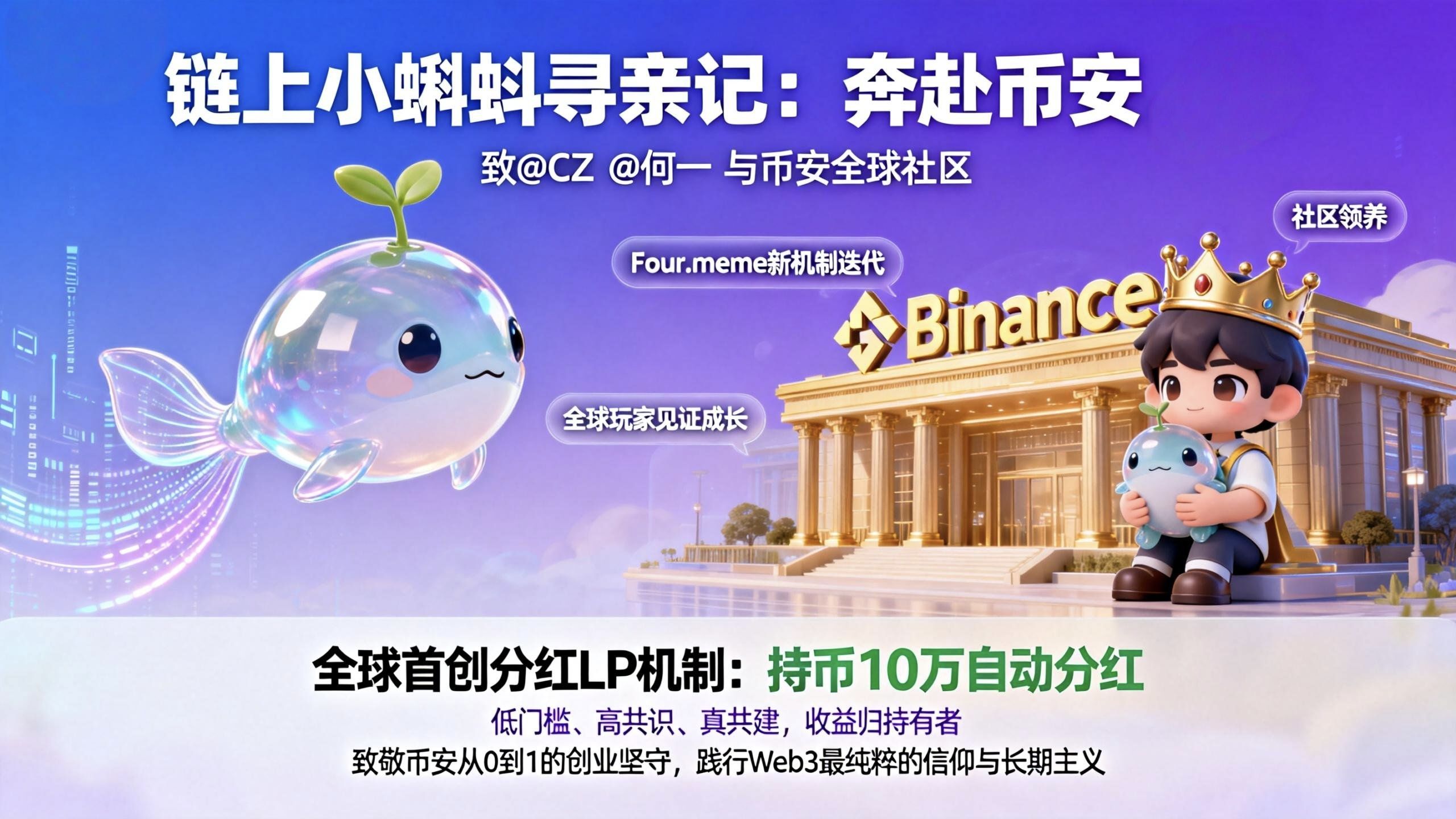 小蝌蚪带来全球首创分红LP机制,完整继承盘古社区联合坐庄精神:无需手动加LP,持币10万即享自动分红,低门槛、高共识、真共建,把收益还给持有者,回归Web3社区共赢本质,与币安“用户优先”的理念同频。
