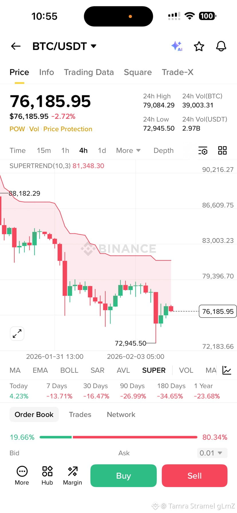Bitcoin is currently trading around $76,000, after a sharp corrective move from the highs near $88K. To the untrained eye, this looks scary. To smart money, this looks like a textbook reset before continuation.