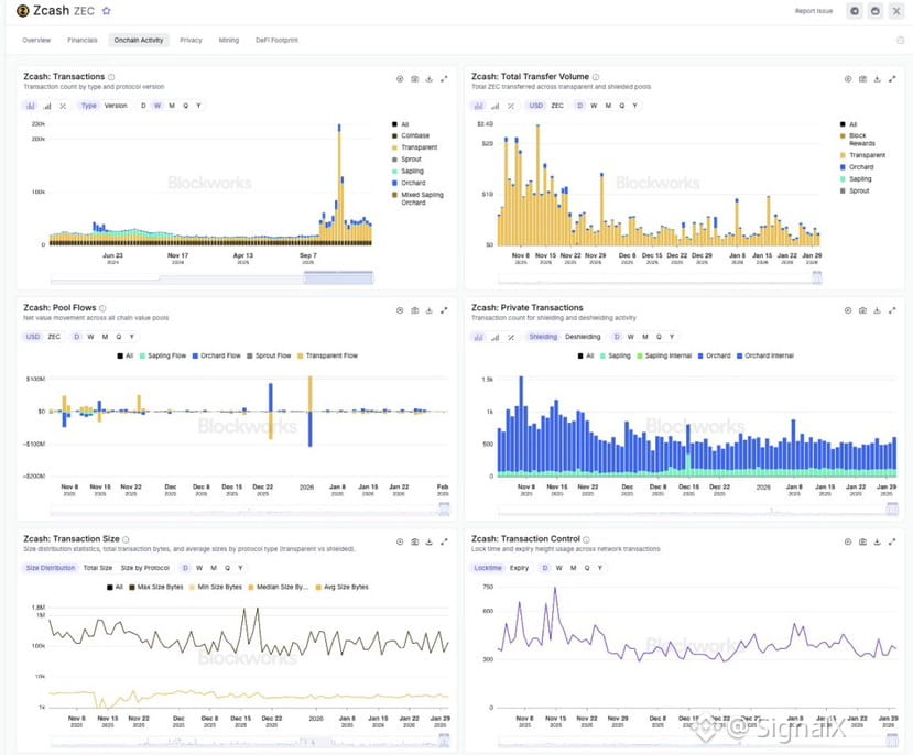 → Hood là do lượng lớn hoạt động diễn ra qua shielded pool – làm mờ dữ liệu on-chain “thường thấy”.
