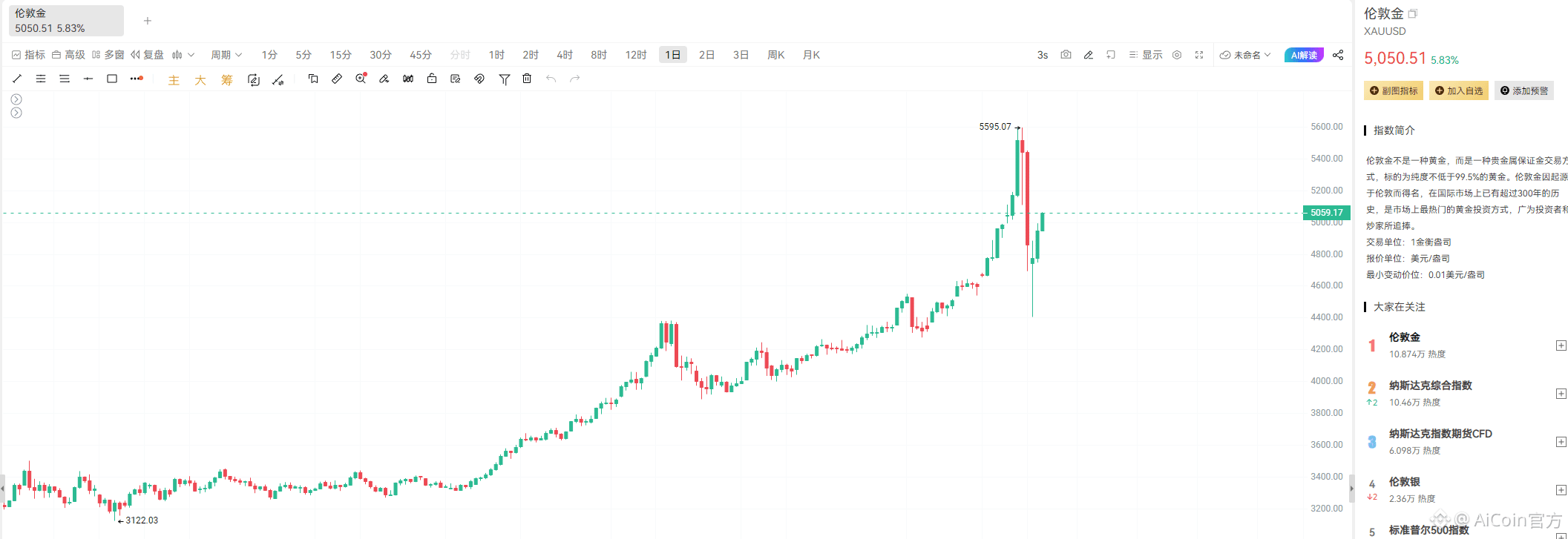 ○ 然而,涨势并未持续,金价随即遭遇断崖式下跌,迅速回落至4500美元/盎司下方,单日跌幅数次超过10%,市场恐慌情绪蔓延。